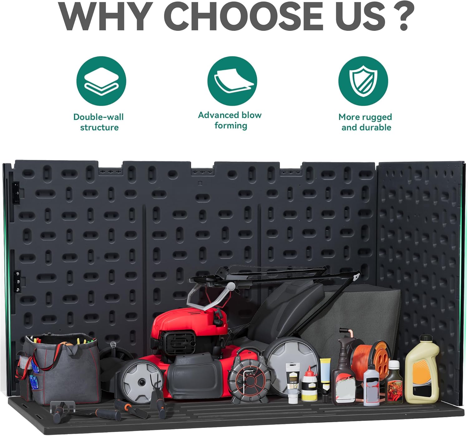 - Easy Setup: Approximately 30 minutes are needed to assemble the lockable storage box; Ensure all components are properly secured or tightened to structural integrity.NOTE: This deck box features a stylish two-tone color design. The Grayish-Black back and right panels may appear Bluish-Gray under sunlight, while the other panels are Black