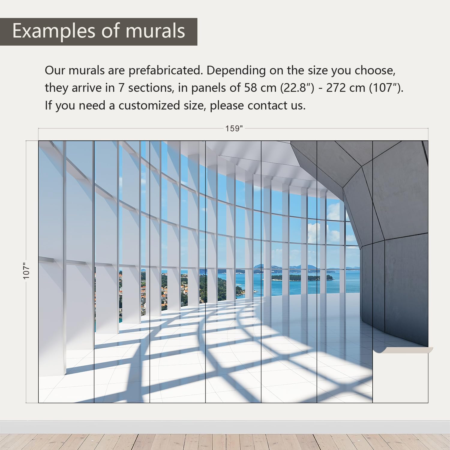 - Size note: Mural measures 159"W x 107"H and is divided into 7 sections, each section is labeled with a number underneath, eliminating the need to overlap patterns when installing.