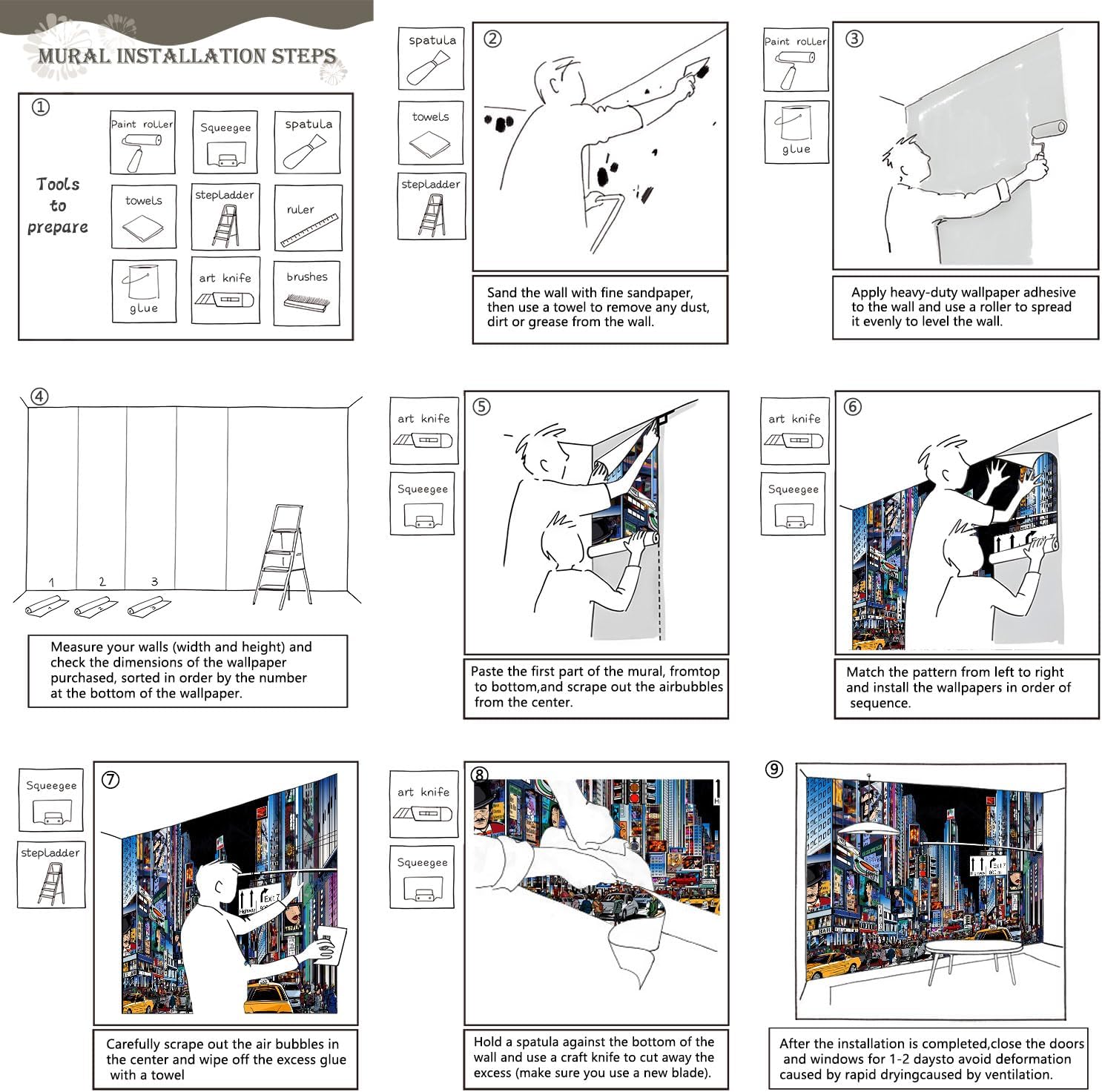 - Tips: Mural can not be peeled and pasted, you need to buy a heavy duty wallpaper glue