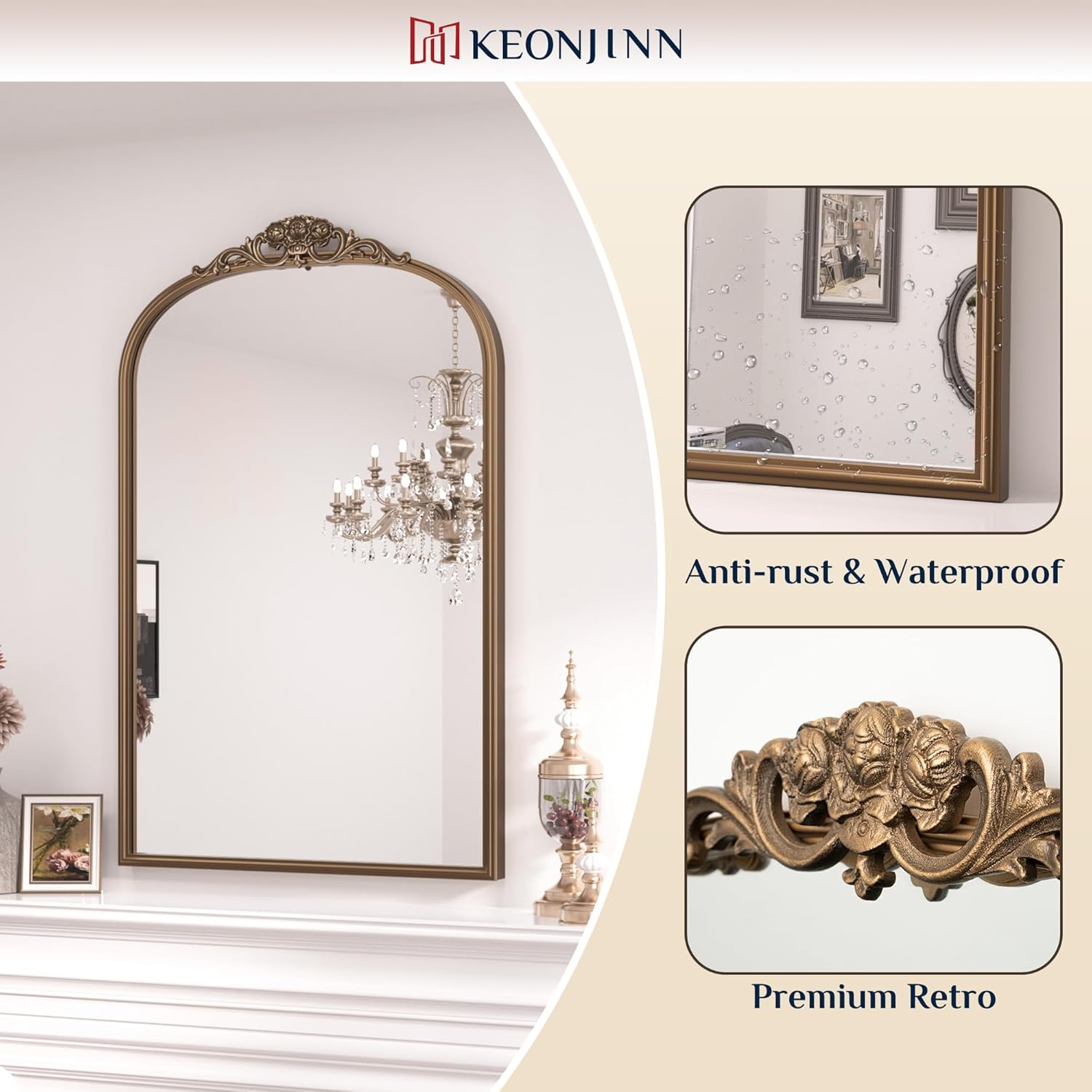 - 【Baroque-inspired Charm】 Keonjinn Antique Arched Mirror is a timeless piece designed to elevate your wall décor. Inspired by the opulence of the Baroque era, this mirror exudes historical charm with its graceful arched design and intricate wooden floral crown, creating a captivating focal point in any room.