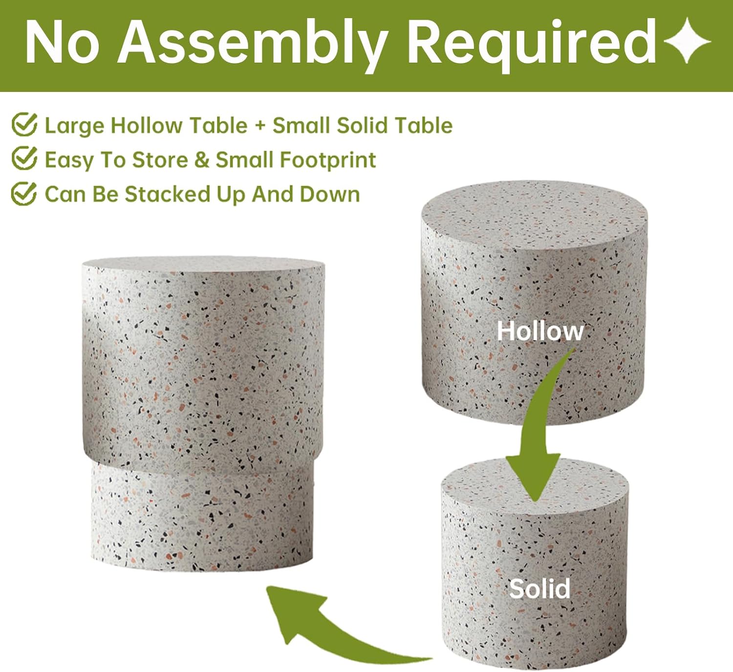 - [Timeless Aesthetic, Effortless Elegance] Designed with a sleek round silhouette and a chic beige textured finish, this nesting table set complements modern, industrial, farmhouse, and luxury interiors alike. Round coffee table set of 2 a statement piece that always feels right at home!