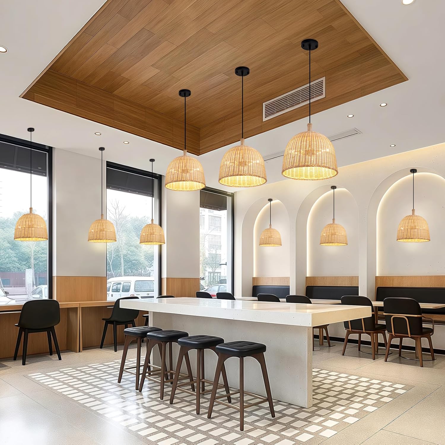 - 【Hand-Woven Rattan Chandelier Natural Material】Rattan craft is selected from the trees we grow , which undergoes various processing procedures. This Rattan craft is heat resistant, fade resistant, safe and healthy