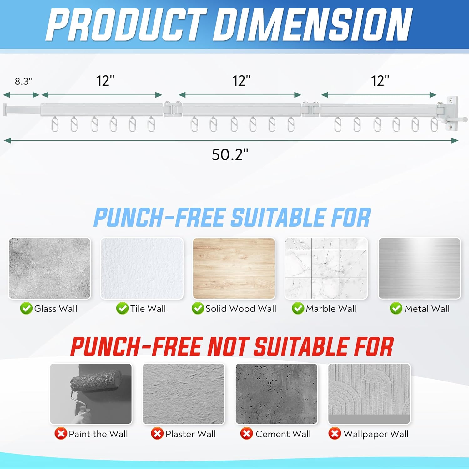 - Wall Mounted Drying Rack(50.2 inch) -- Our wall-mounted clothes drying rack foldable will maximize your space, since it featuring 3 folding sections & a hidden telescopic rod. It is an ideal option for drying various garments such as shirts, towels, socks, hats, coats, suits, dresses, and much more. Its compact and stylish design efficiently aids in organizing your laundry room.