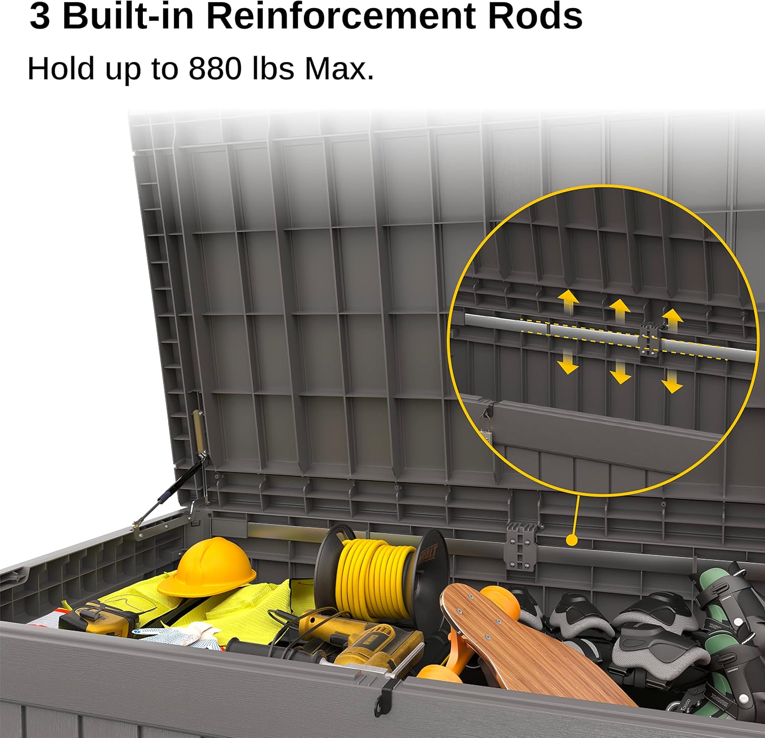 - š¦š§š„š¢š”š šš”š š©šš„š¦šš§ššš: The EAST OAK 230-gallon deck box is reinforced with three built-in rods, supporting up to 880 pounds. This makes it perfect for outdoor storage and doubles as a sturdy patio table.