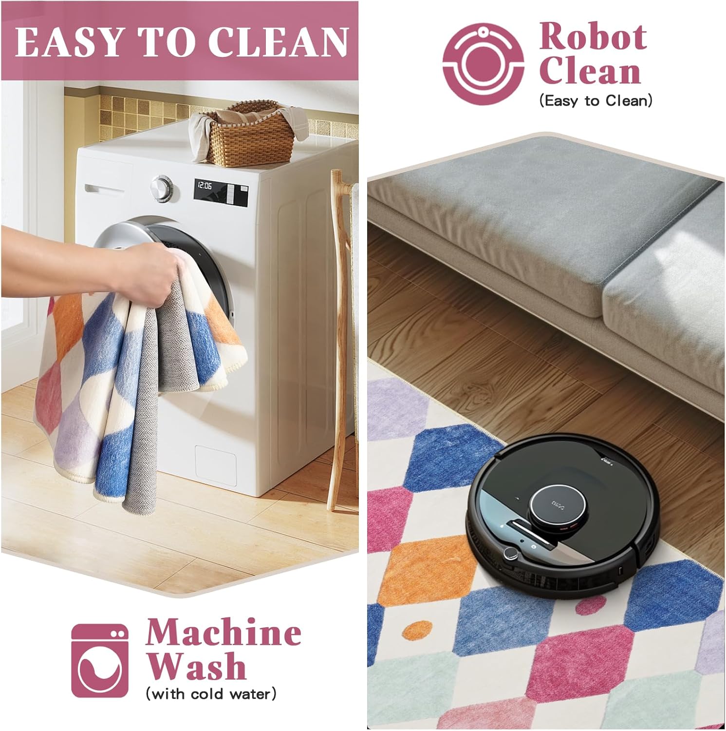 - Warm Vintage Colorful Design: Adorned with delightful diamond lattice splicing pattern against a soft cream bottom, this rug adds a playful charm to children's rooms and infuses vitality into adult spaces