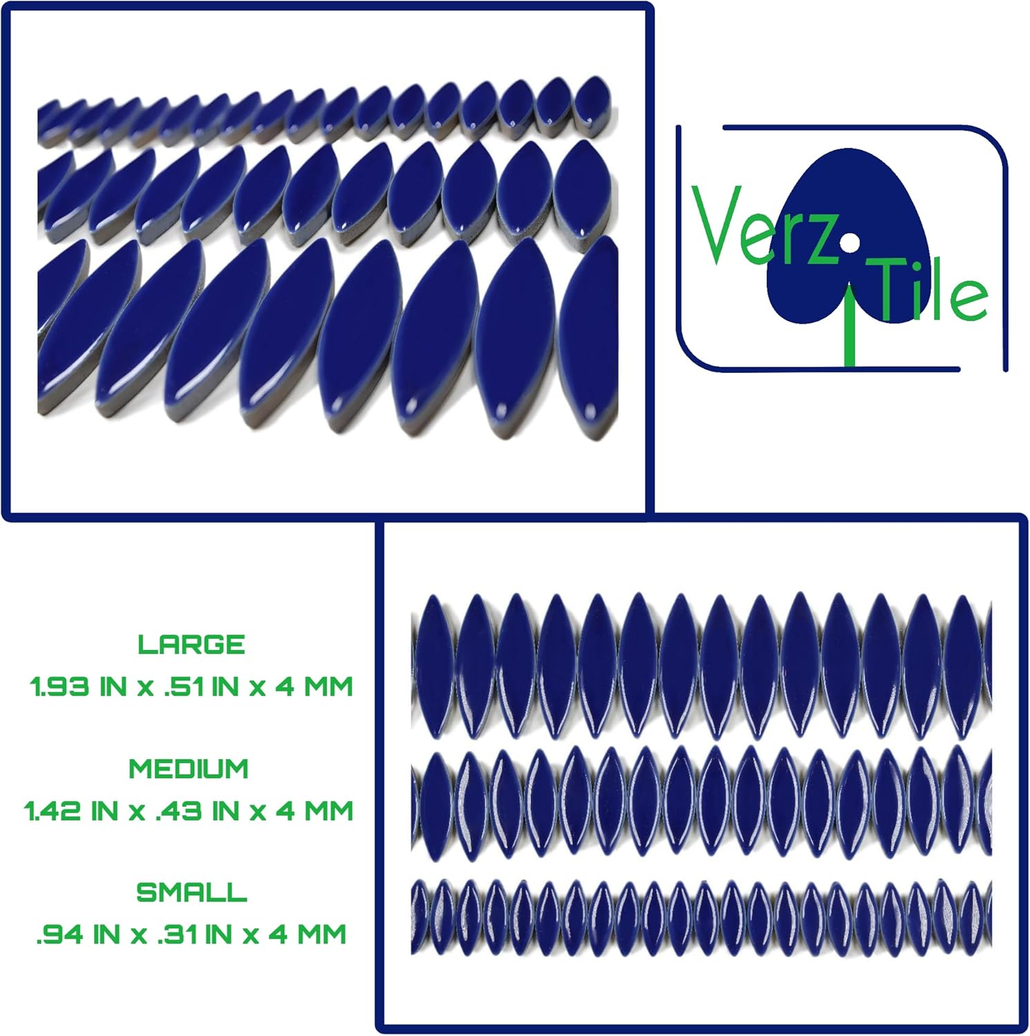 VerzTile Mosaic Tiles for Crafts - Petal Shaped Ceramic Tile Craft Hobbies & Art Projects 39 Color Options Endless Creativity DIY Design (Dark Blue)