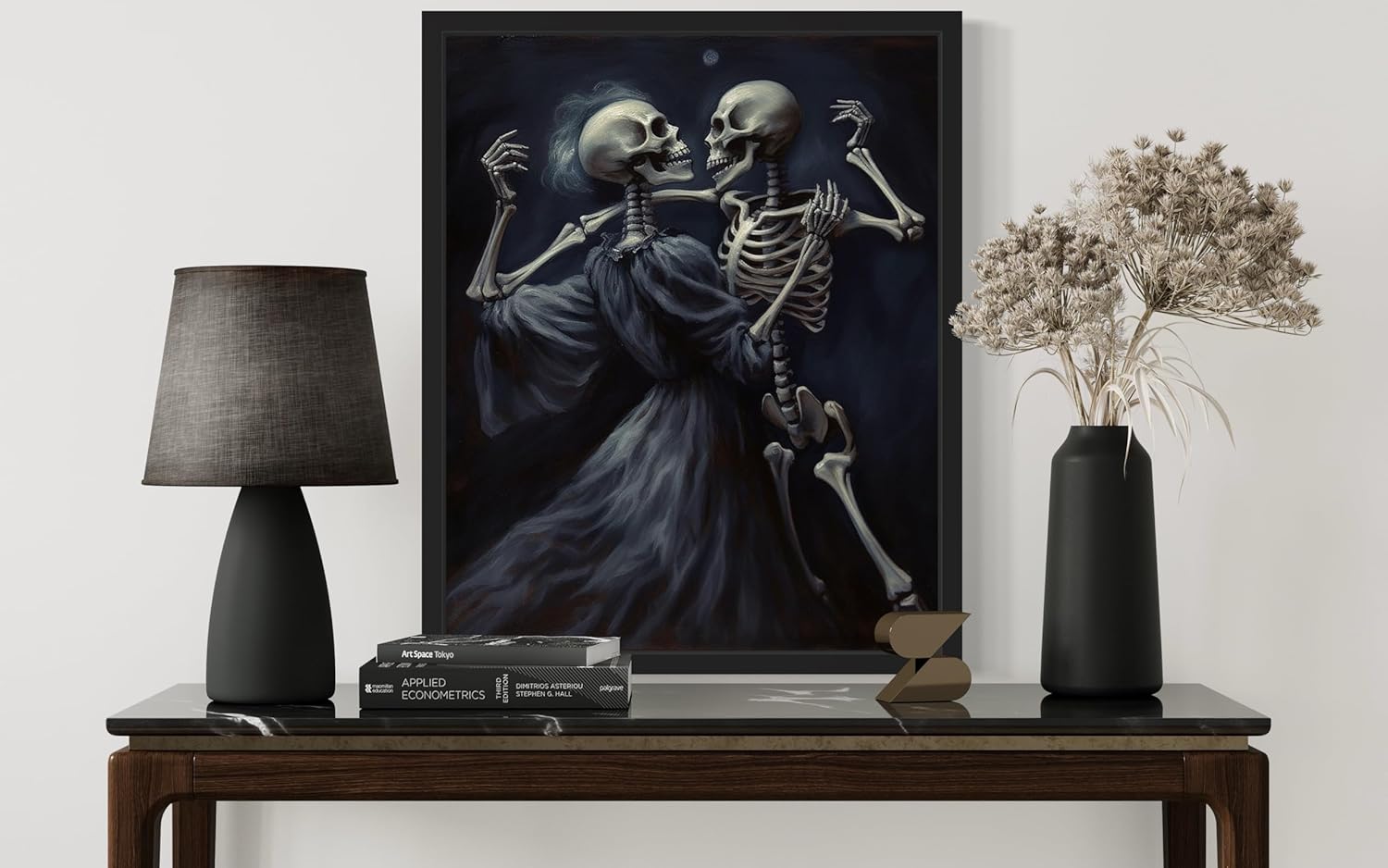Dancing Skeleton Poster Art Print, Halloween Scary Vintage Wall Art Academia Spooky Painting Decoration for Horror Prints, Gothic Posters Bedroom Decor 89 (Dancing Skeleton, 16 x 20 inches, Black Frame)