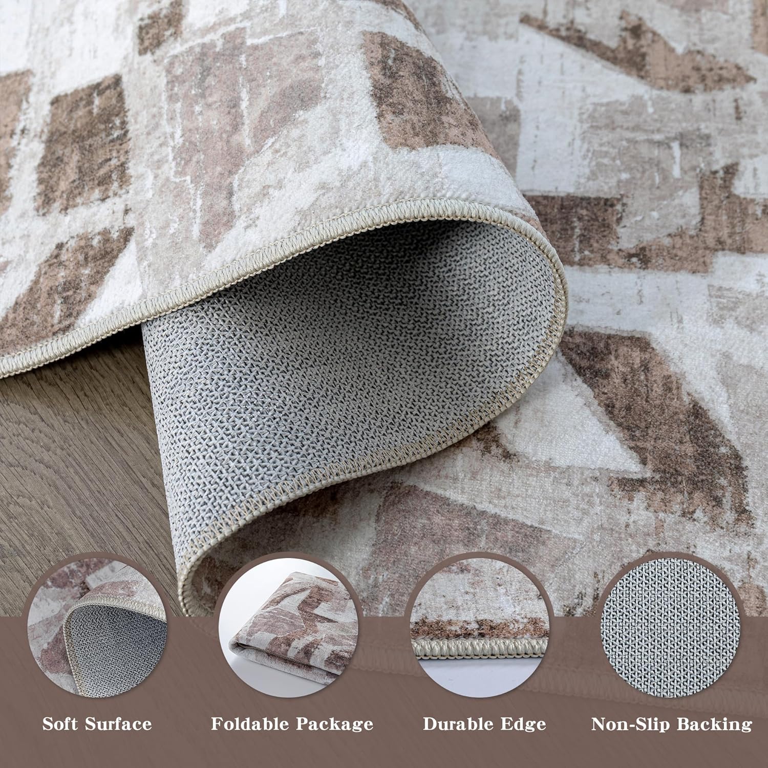 Modern Abstract 6X9 Area Rug for Living Room Bedroom Washable, with Non-Slip Rubber Backing Print Faux Wool Thin, Brown Throw Large Carpet for Kids Playroom Dining Room Pet & Child Friendly