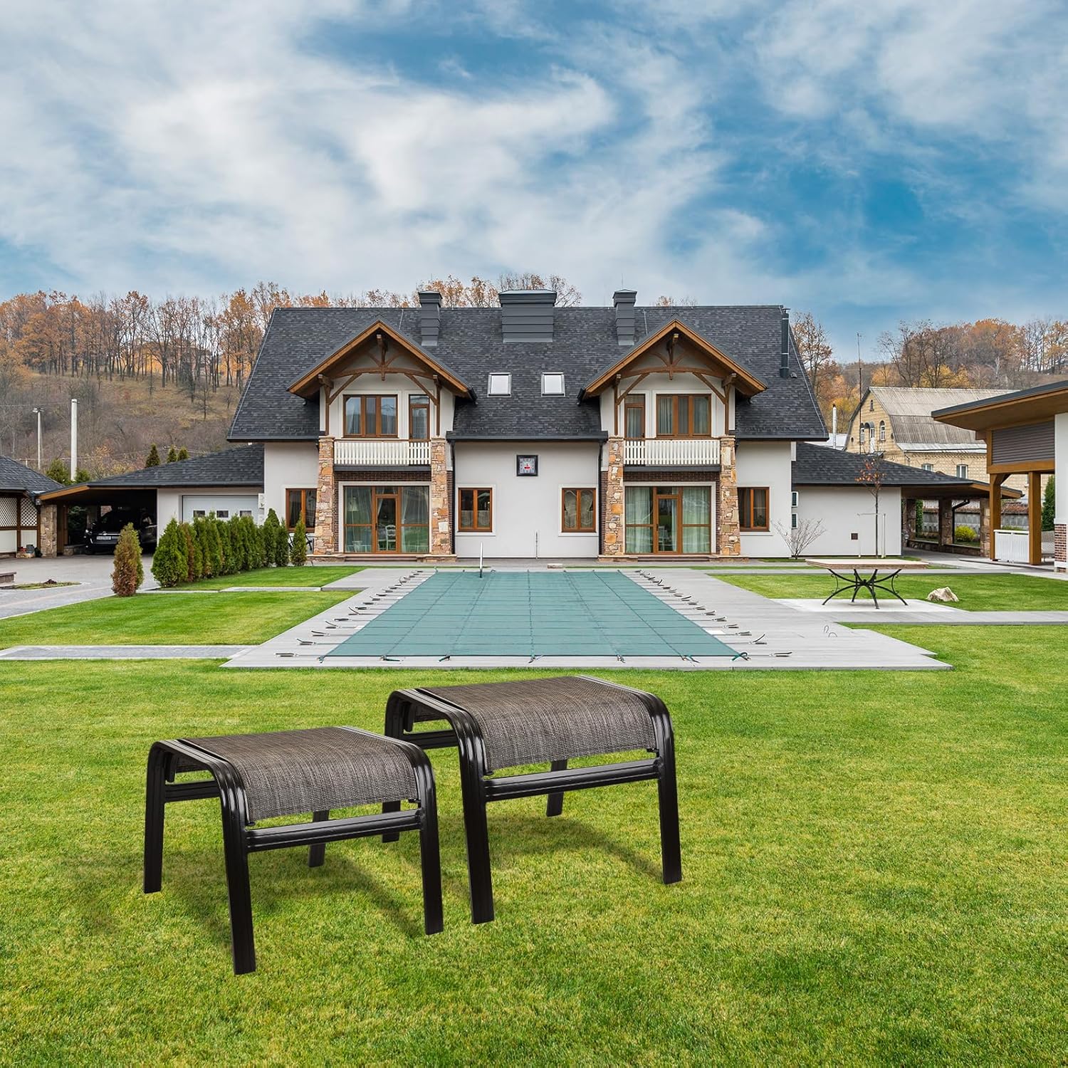 - With the concise design and classic patio appearance, the ottoman can complement with any daily occasions. It can be used anywhere you want, such as courtyards, lawns, gardens, balconies, swimming pools, porches, and indoors.These ottomans will suit you really well with your other furniture