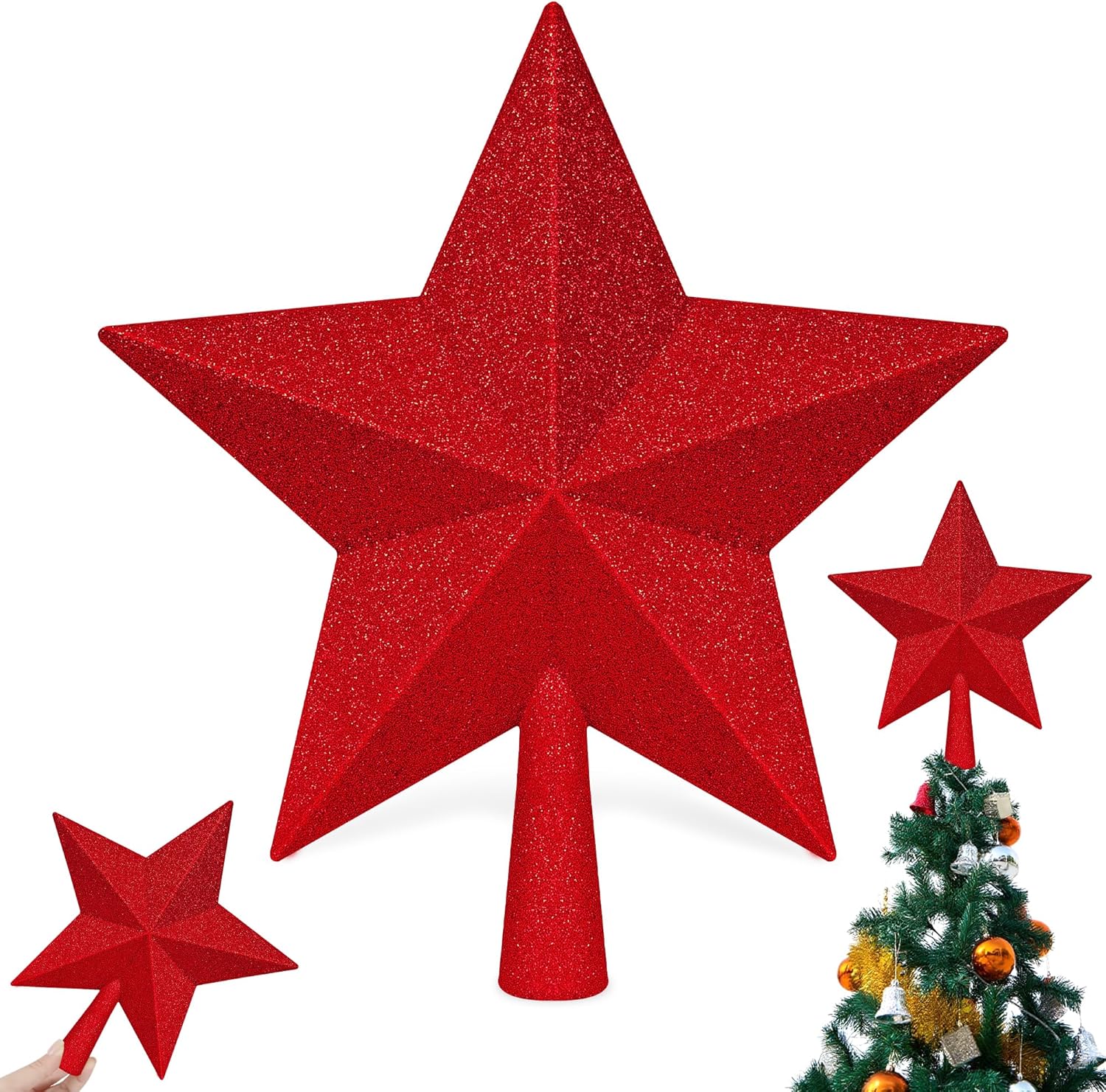 Star Tree Topper, 10" Red Christmas Tee Topper Decorations, Glitter 3D Xmas Bethlehem Star Waterproof Shatter-Proof, Christmas Tree Topper Ornament Decor for Christmas Holiday Party Indoor Outdoor
