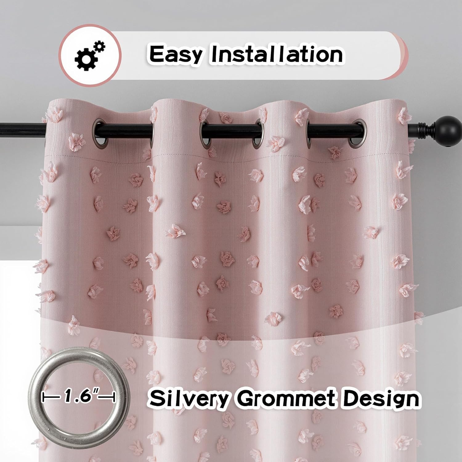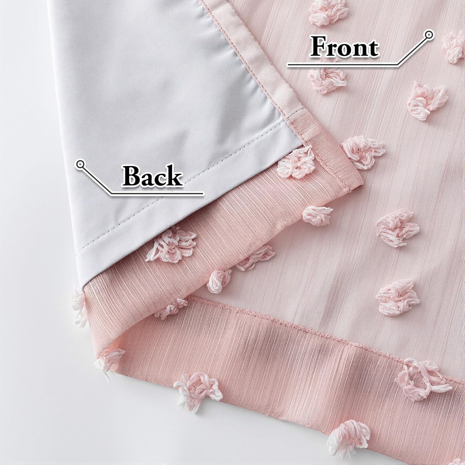 MYSKY HOME 100% Blackout Curtains for Girls Bedroom 95 Inch Long Total Room Darkening Curtain for Living Room 2 Panels Grommet Light Blocking Sliding Door Drapes Blush Pink Pom Pom Sheer 52 x 95 Inch