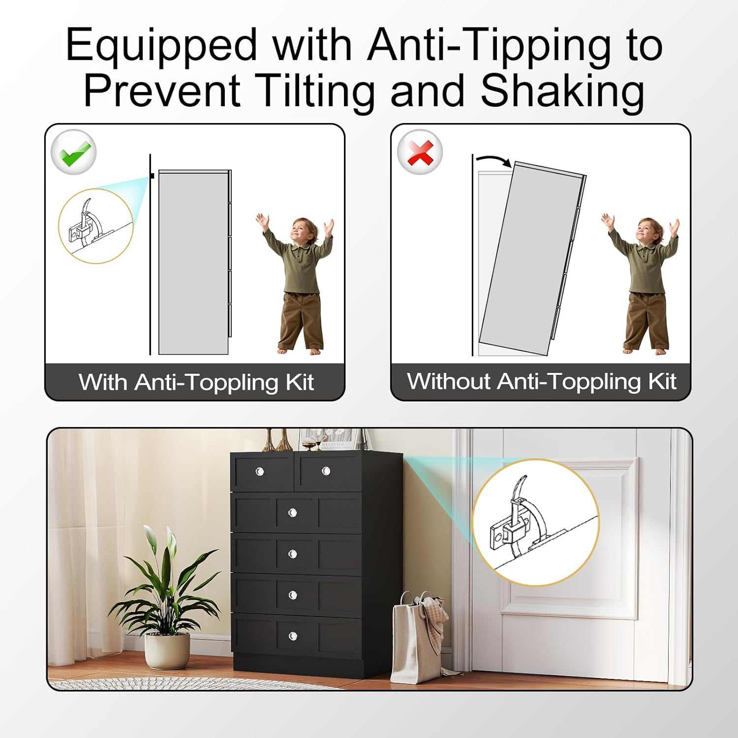 - Durable & Stable Construction Built to last, this black dresser 6 drawer for bedroom features premium ball-bearing drawer glides for smooth operation and exceptional weight capacity. Whether storing clothes, toys or office supplies, the black 6 drawer dresser wide maintains steadfast stability. The black 6 drawer dressers for bedroom retains its flawless performance and appearance even with daily use over time.