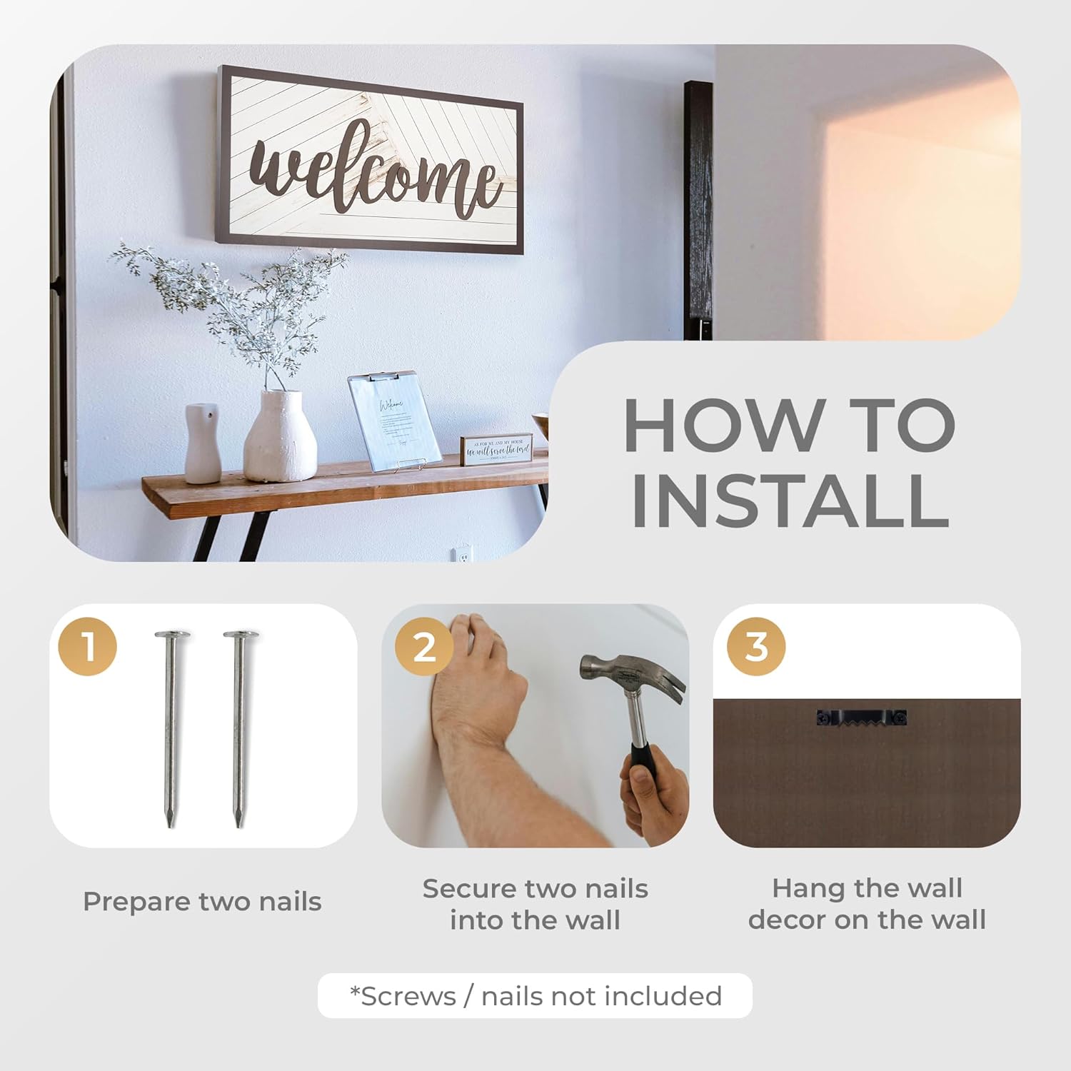 - [VERSATILITY] More than just entryway décor, this sign complements living rooms, kitchens, offices, and lobbies. It is also a thoughtful gift for housewarmings gifts, new neighbors, which helps friends and family add warmth to their own homes. With its simple yet inviting design, it is suitable for daily display.