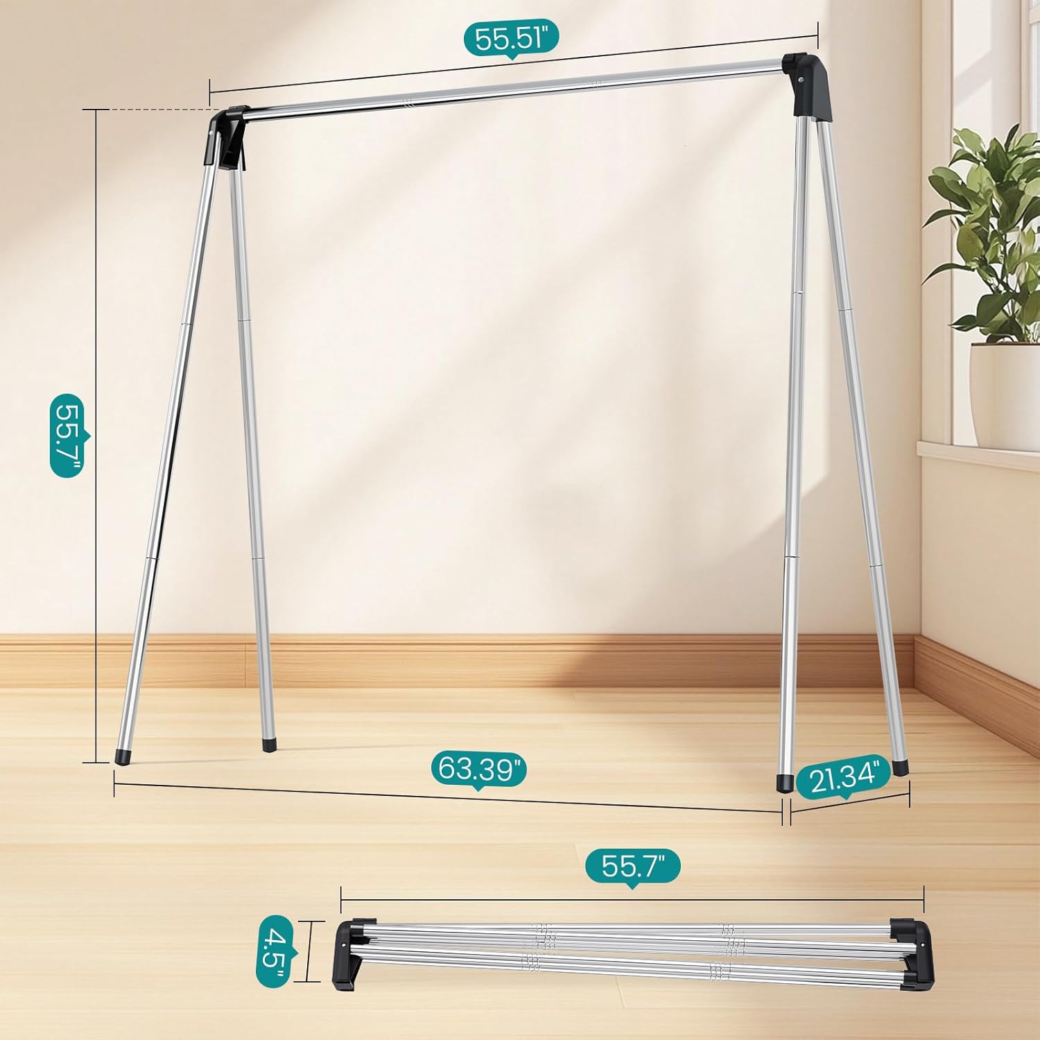 - Generous Drying Capacity: This foldable laundry drying rack offers 55 inches of drying space, allowing you to hang a full load of laundry in one go. No more needing to drape extra items over chairs or hang them in doorways.