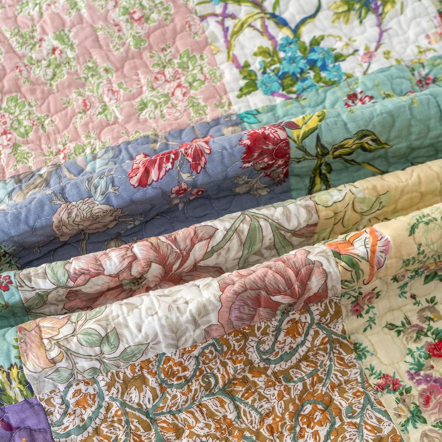 YAYIDAY Oversized Queen Quilt Set Patchwork Bedspread (110x118 Inch) - 100% Cotton Reversible Breathable Floral Quilted Coverlet with Pillow Shams Fit All Season