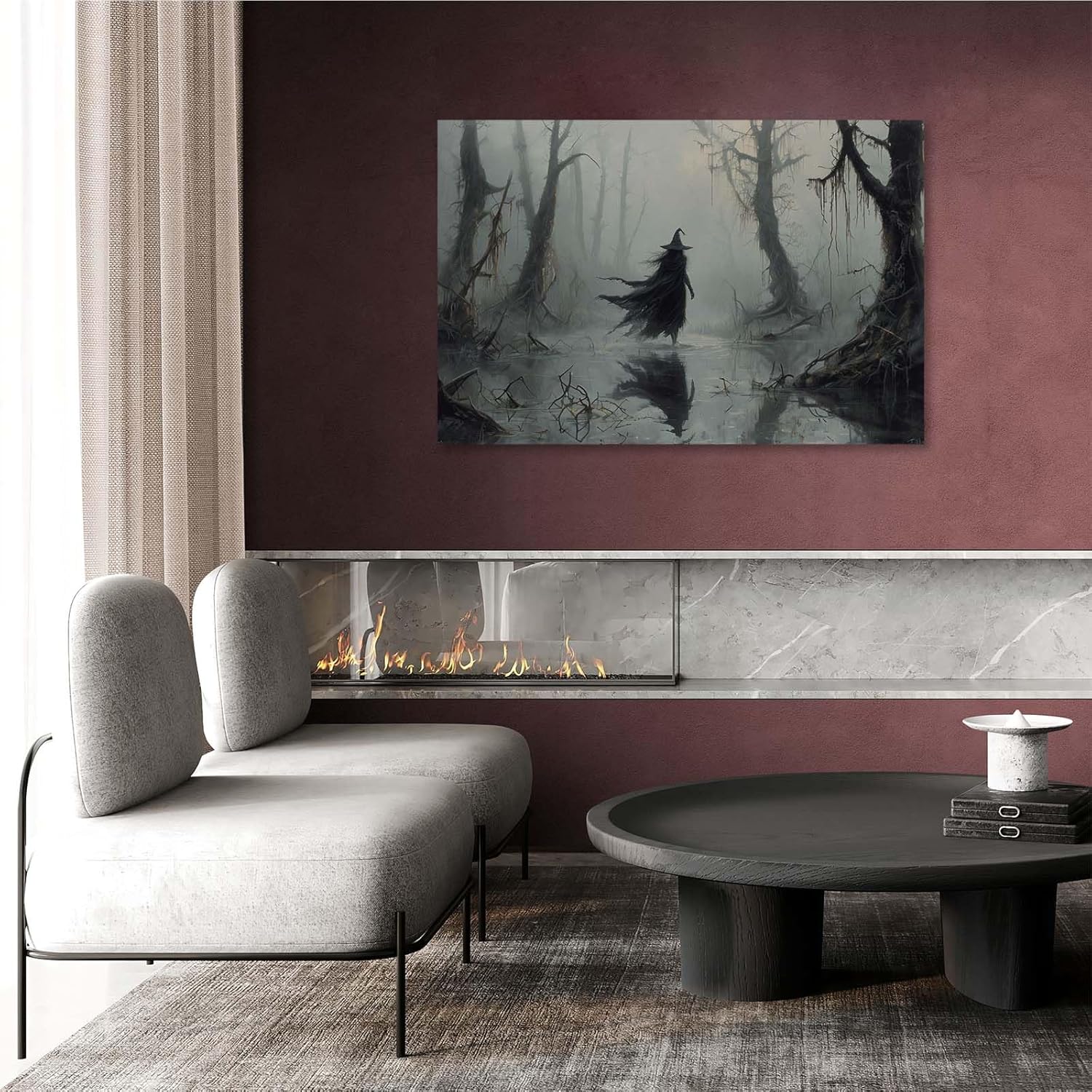 JFHCQJPK Vintage rustic swamp witch poster dark moody wall art gothic horror season halloween print for home decor retro dark moody painting16x24in Frameless