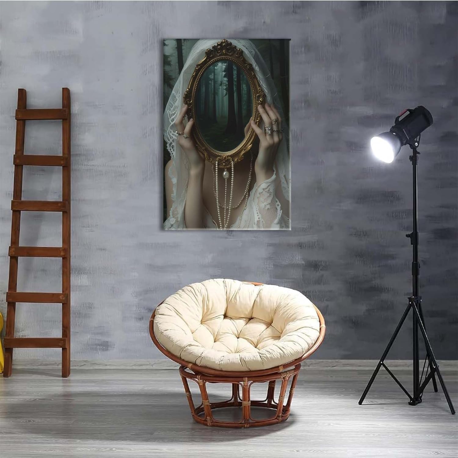 Mirror face covering dark art poster print melancholy gothic painting vintage feminine print victorian style decoration antique art32x48in Frameless