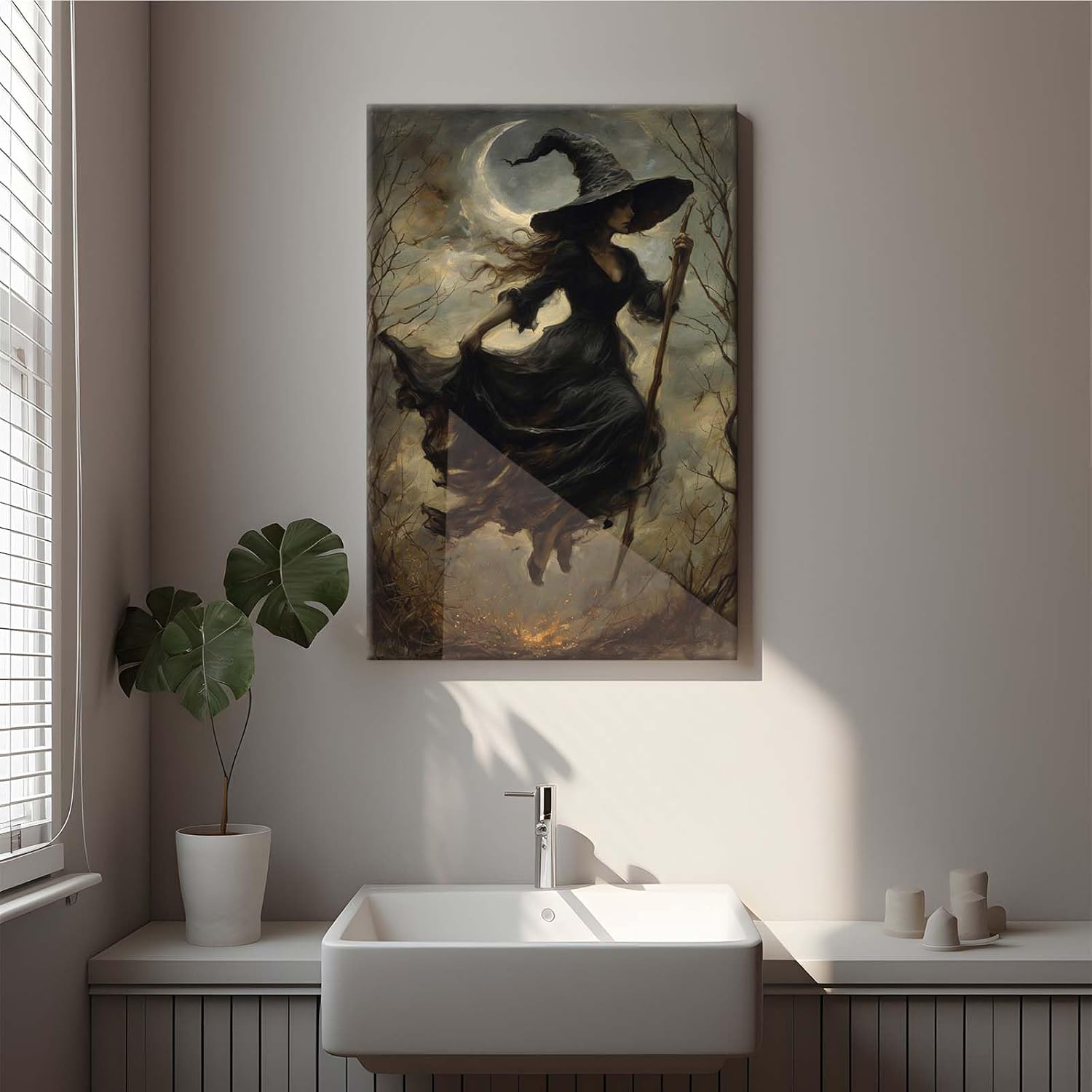 JFHCQJPK Witch in the Forest Halloween Print Wall Art Poster Witch Decor Vintage Print Dark College Wall Art Victorian Gothic Room Decor Canvas Wall Print28x40in Frameless