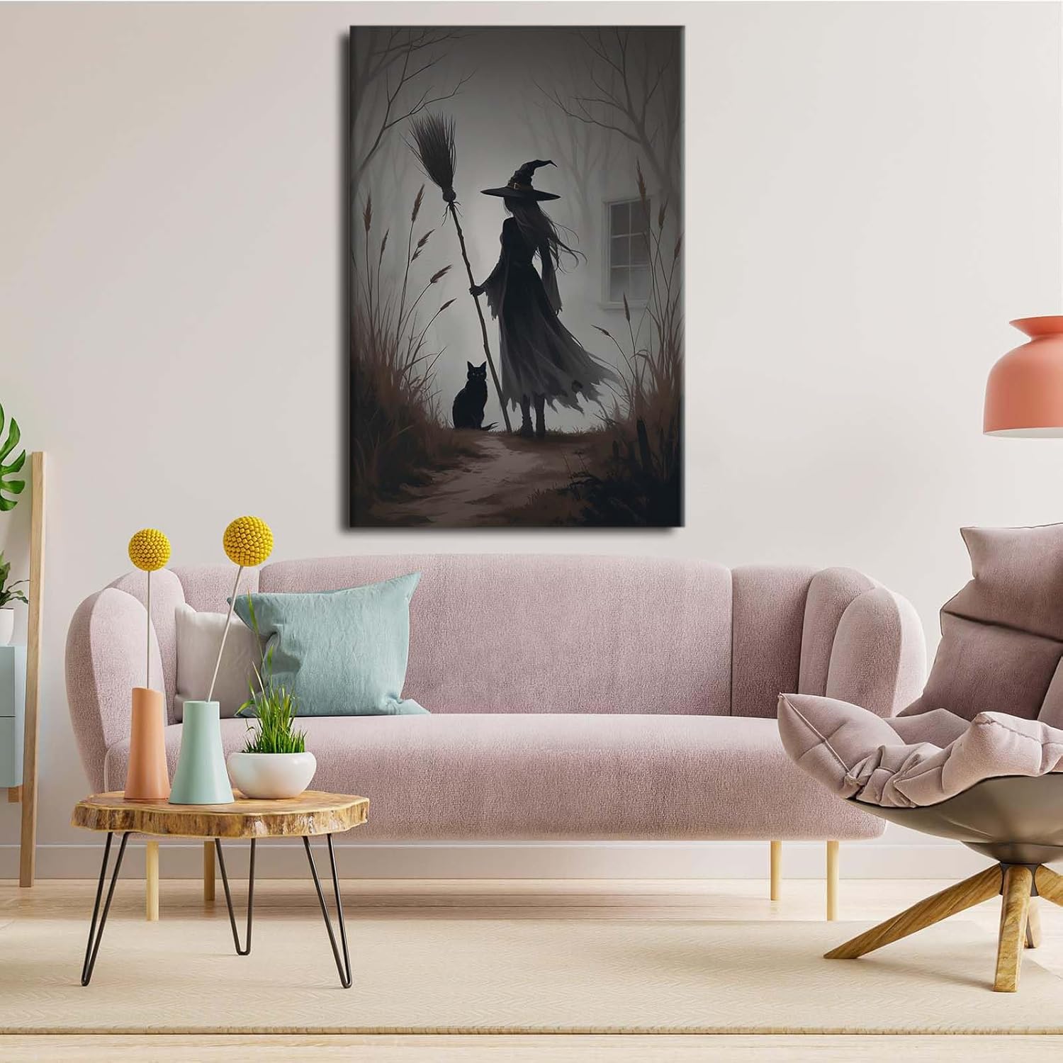JFHCQJPK Vintage forest witch and black cat poster Halloween mural poster decoration mural art magic suitable for home living room bedroom32x48in Frameless