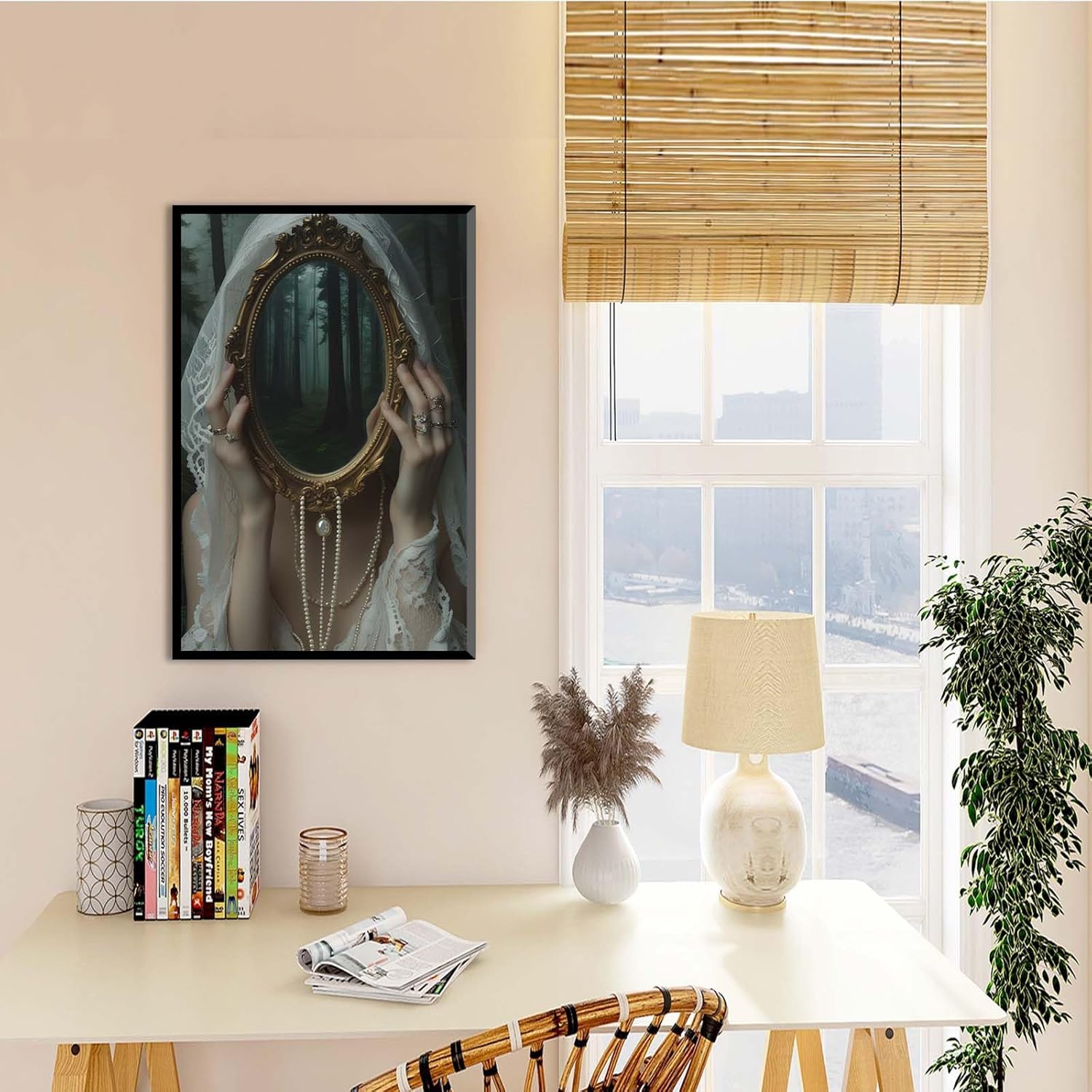 Mirror face covering dark art poster print melancholy gothic painting vintage feminine print victorian style decoration antique art24x36in Metal blackFramed
