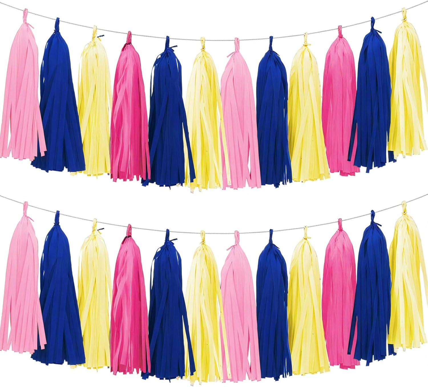 Tissue Paper Tassel Garland Banner, 20 Pack, Hot Pink Navy Blue Lemon Yellow Pink, Party Decorations for Birthday, Baby Shower