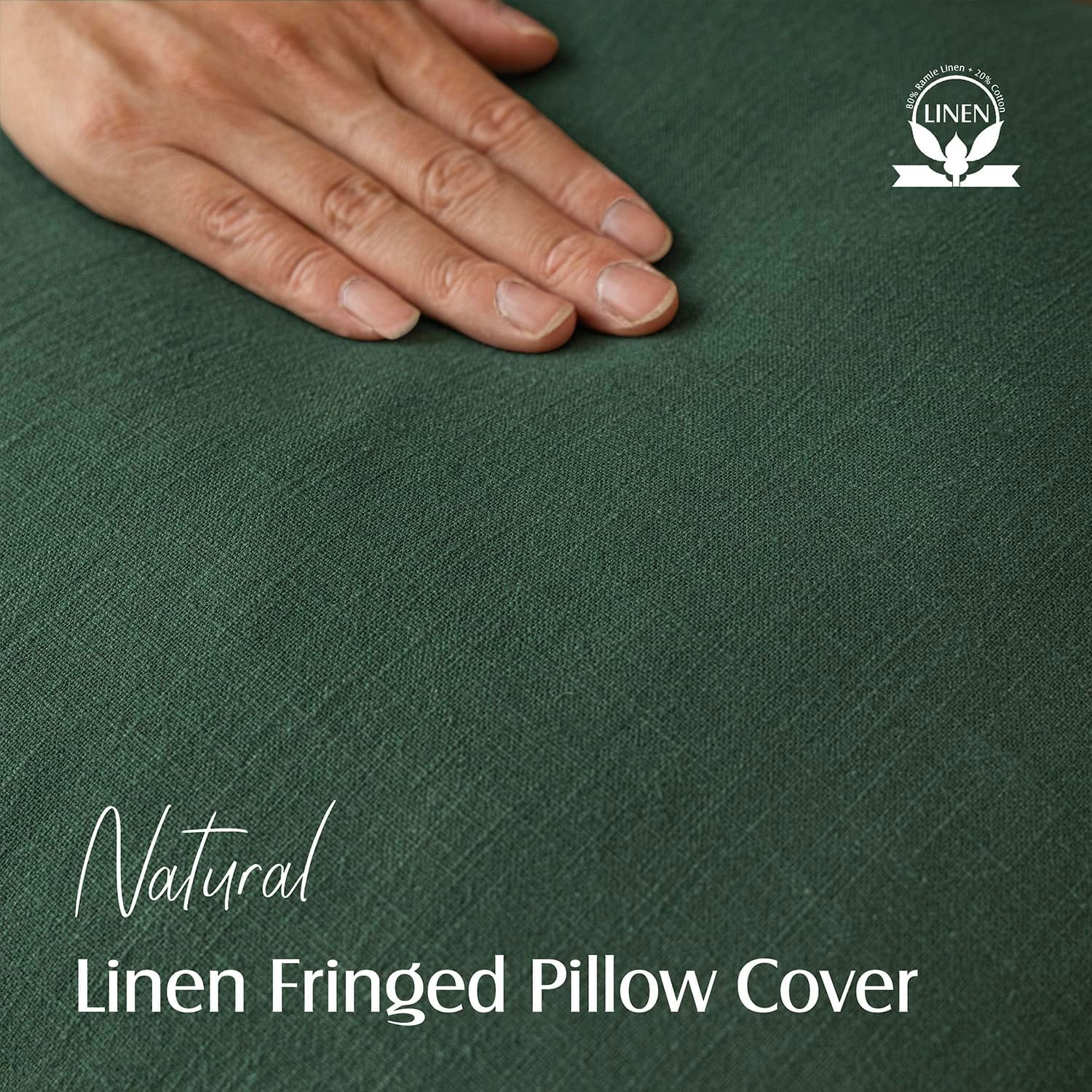Foindtower Set of 2 Decorative Linen Fringe Lumbar Throw Pillow Covers Boho Farmhouse Cushion Cover with Tassels Soft Accent Pillowcase for Couch Sofa Bed Living Room Home Decor,12×20 Inch,Pine Green