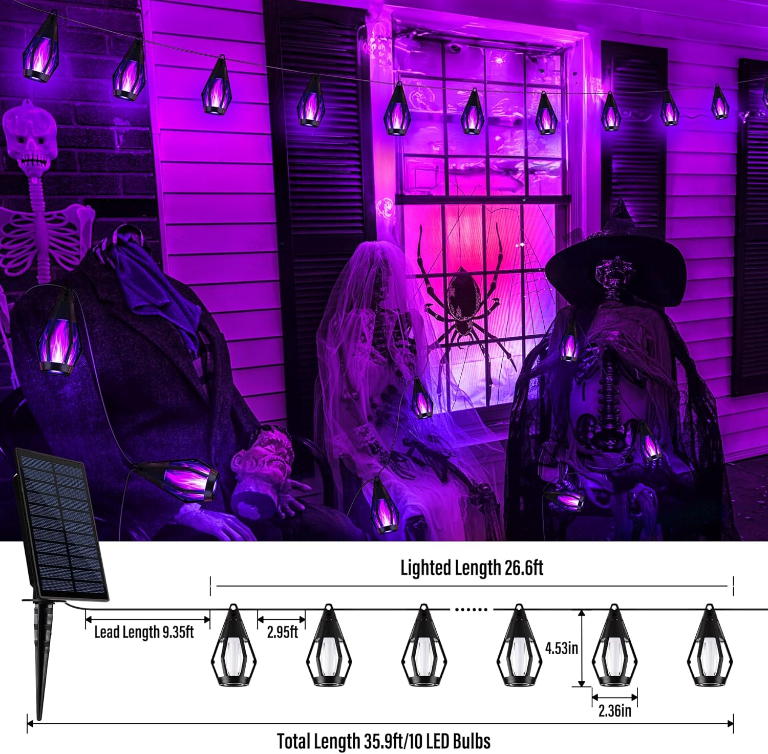 iBaycon Solar Halloween Lights, 27Ft 10 LED Bulbs Flickering Flame String Light, Outdoor Waterproof Solar Flame Lights for Garden Yard Patio Halloween Decorations (Purple)