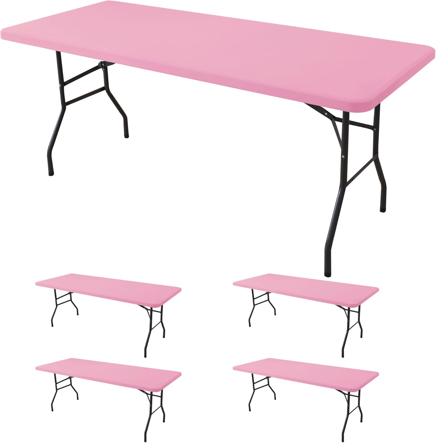 Fitted Tablecloth for 8 Foot Rectangle Tables-4 Pack Pink Elastic Outdoor Picnic Table Cover-Spandex Stretch Folding Table Cloths 8ft for Camping Dining Room Patio Kitchen Banquet Party