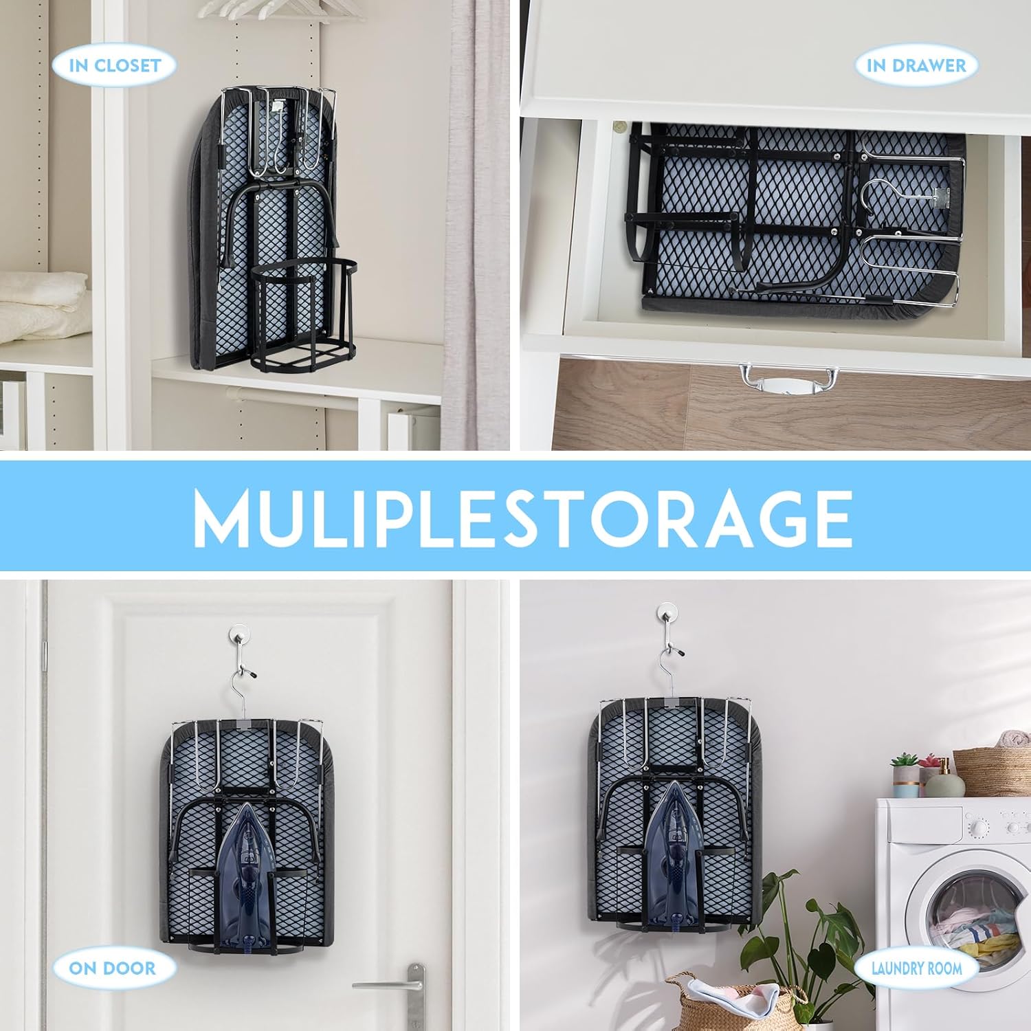 - SPACE SAVING MULTI- Scene Hero- this mini ironing board fits seamlessly into laundry rooms, dorm closets, or luggage. Its ultra-slim profile slides under beds, tucks into cabinets, or hangs vertically with the built-in elastic hook β perfect for apartments, RVs, or hotel stays.