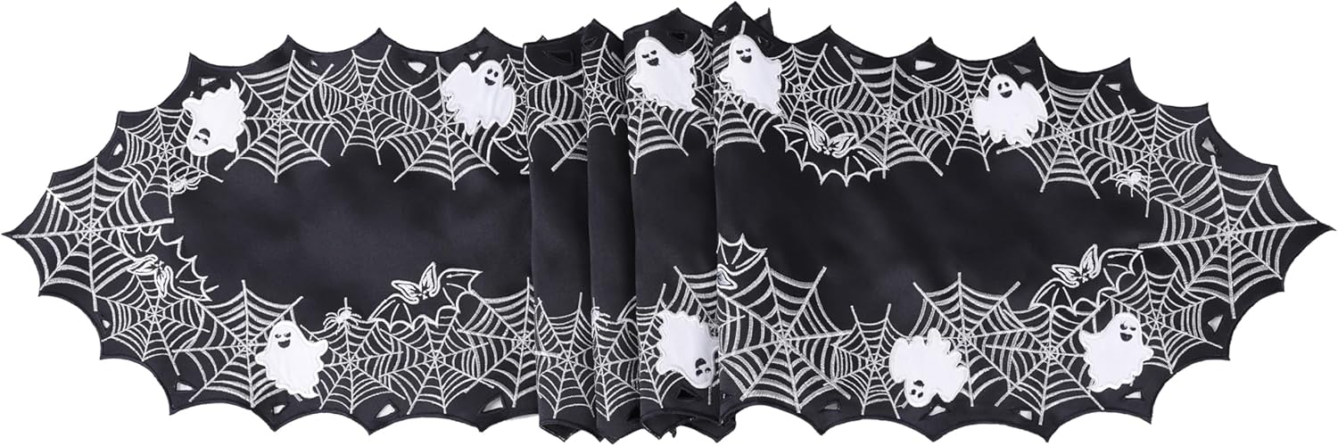 - 🖤 Versatile Seasonal Accent – Whether you're going for a chic gothic look or full-on haunted mansion vibes, this embroidered spiderweb table runner ties your Halloween décor together in a fun yet refined way