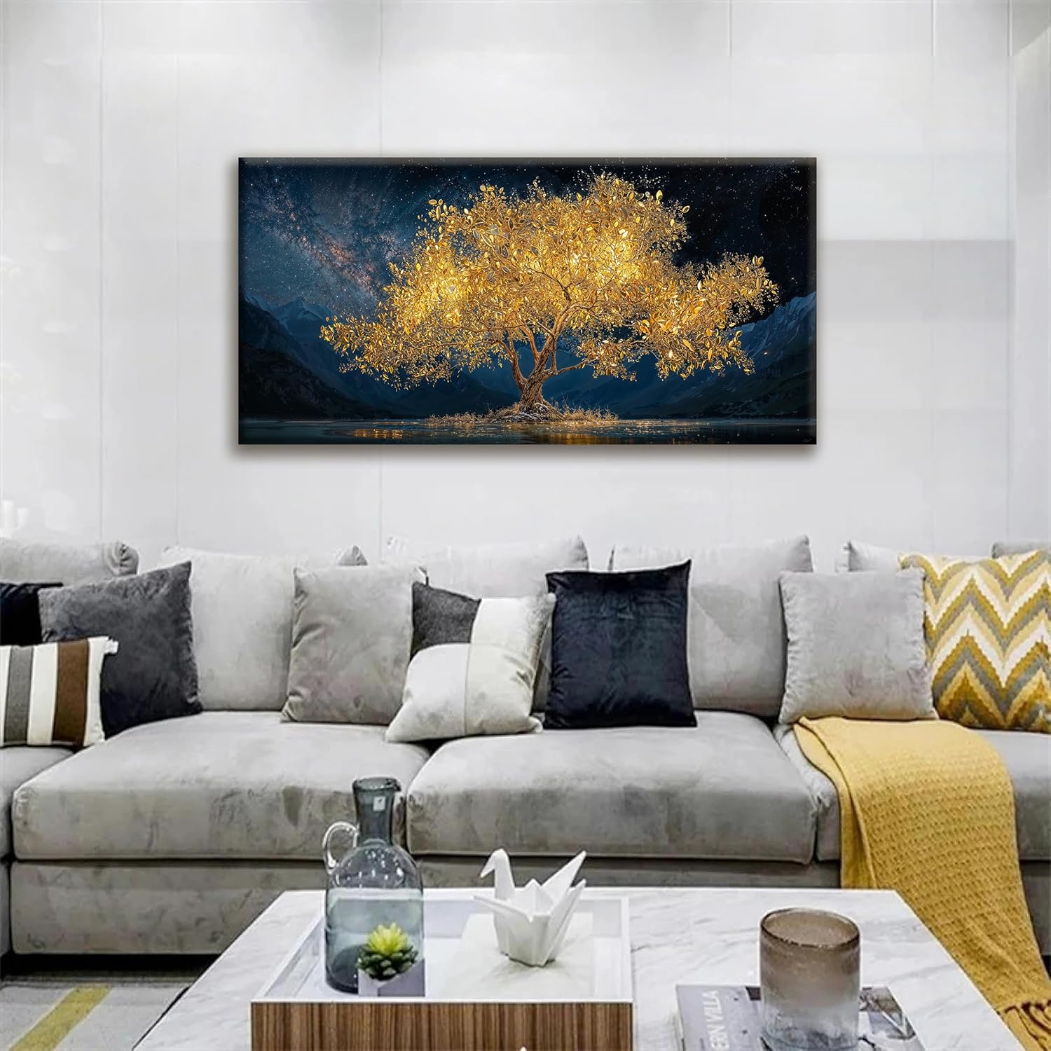 Tsomzxng Modern Canvas Wall Art Decor Print Paintings Gold Tree Of Life Landscape Painting Prints Abstract Wall Decor Picture For Bedroom Office Home Kitchen Artwork Ready To Hang 20"×40"
