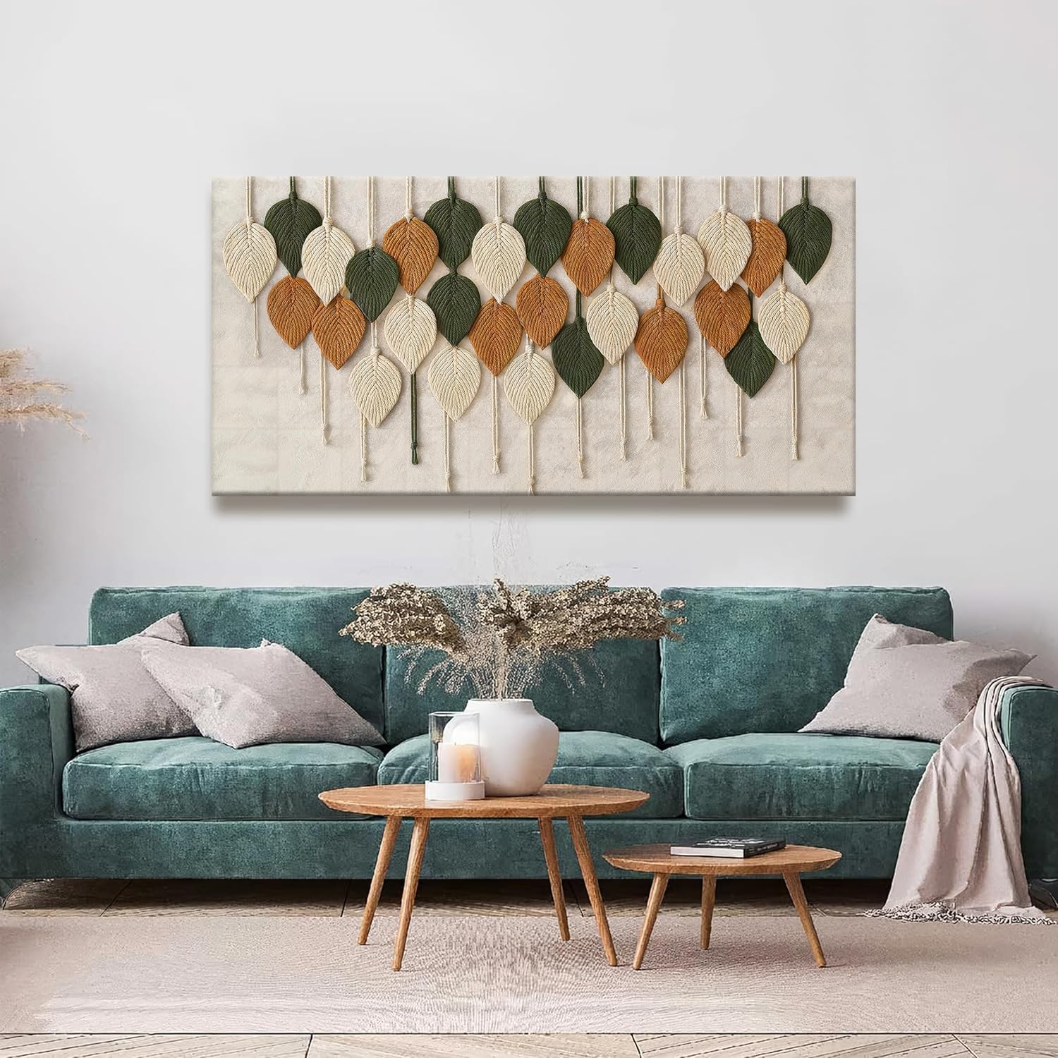 Boho Wall Modern Wall Art Print Paintings Leaves Feather Multicolor Canvas Wall Art Decor For Living Room Bedroom Apartment Kitchen Home Wall Decor 24"W X 48"L Ready To Hanging