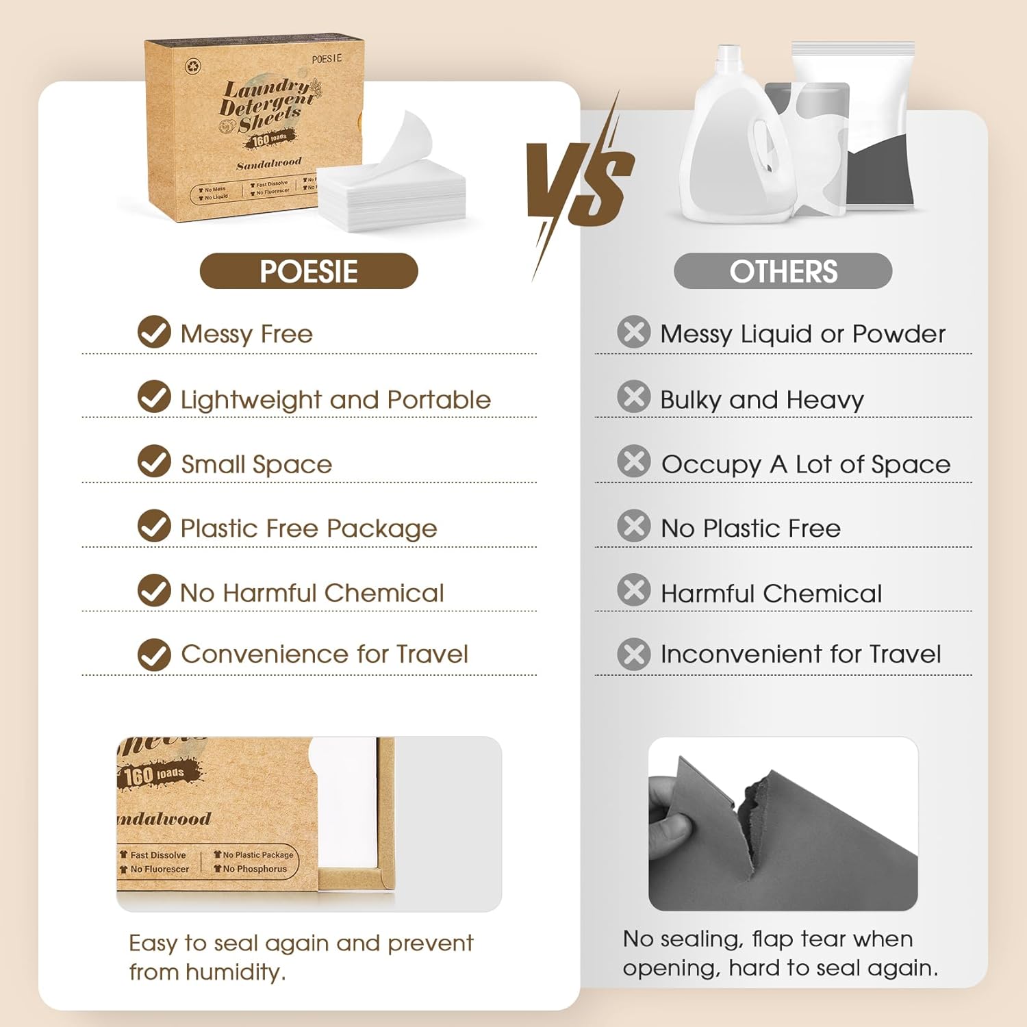 Poesie Laundry Detergent Sheet Sandalwood Scent 160 Sheets Non Plastic Washing Sheets Detergent Travel Laundry Kit No waste Portable Soap Sheet for Machine Wash & Hand Wash