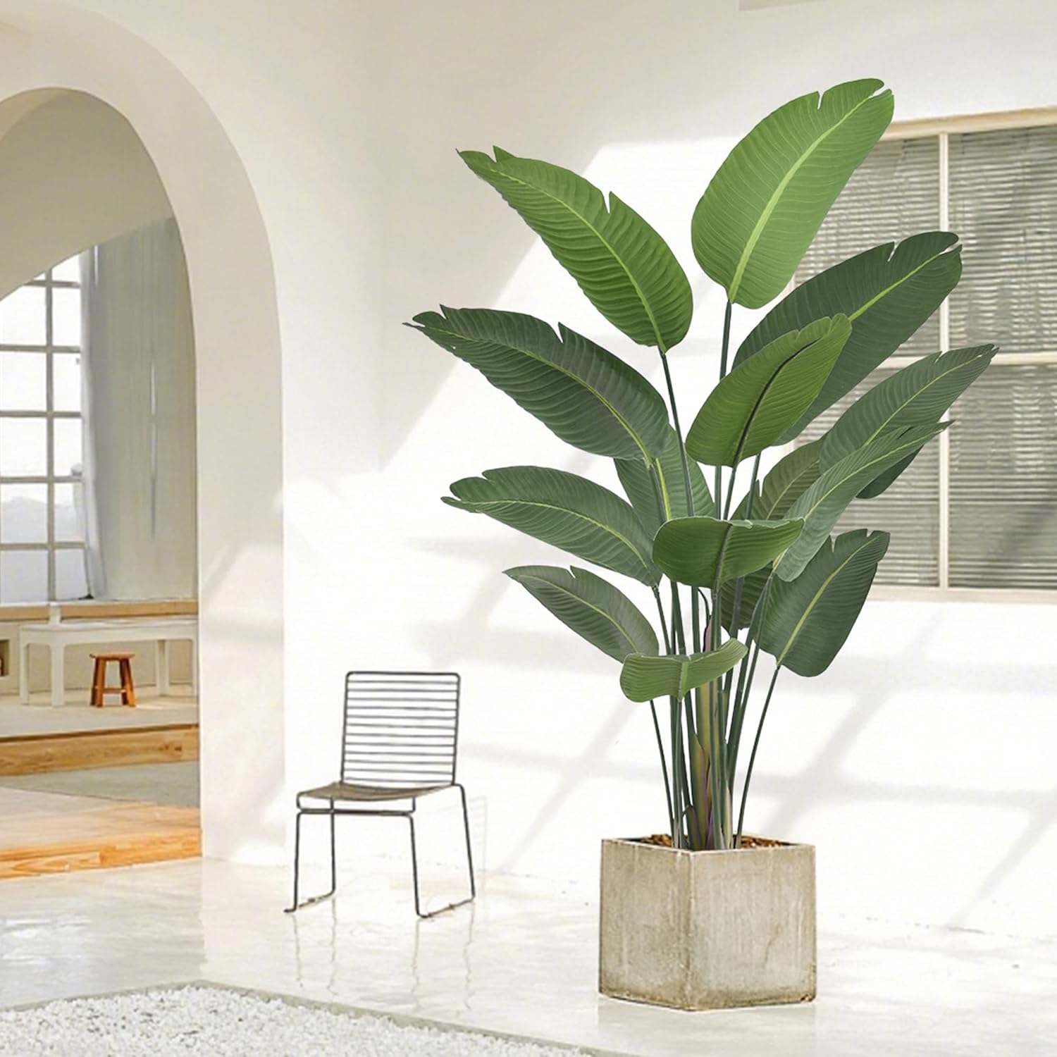 - Indoor Decor: Artificial Bird of Paradise Tree provides timeless home dΓ©cor as a realistic fake plant, odorless and indelible, this large artificial plant is perfect for a variety of environments including living rooms, bedrooms, kitchens, entrances, patios, cafes, bathrooms, offices, malls, and doorways and corners