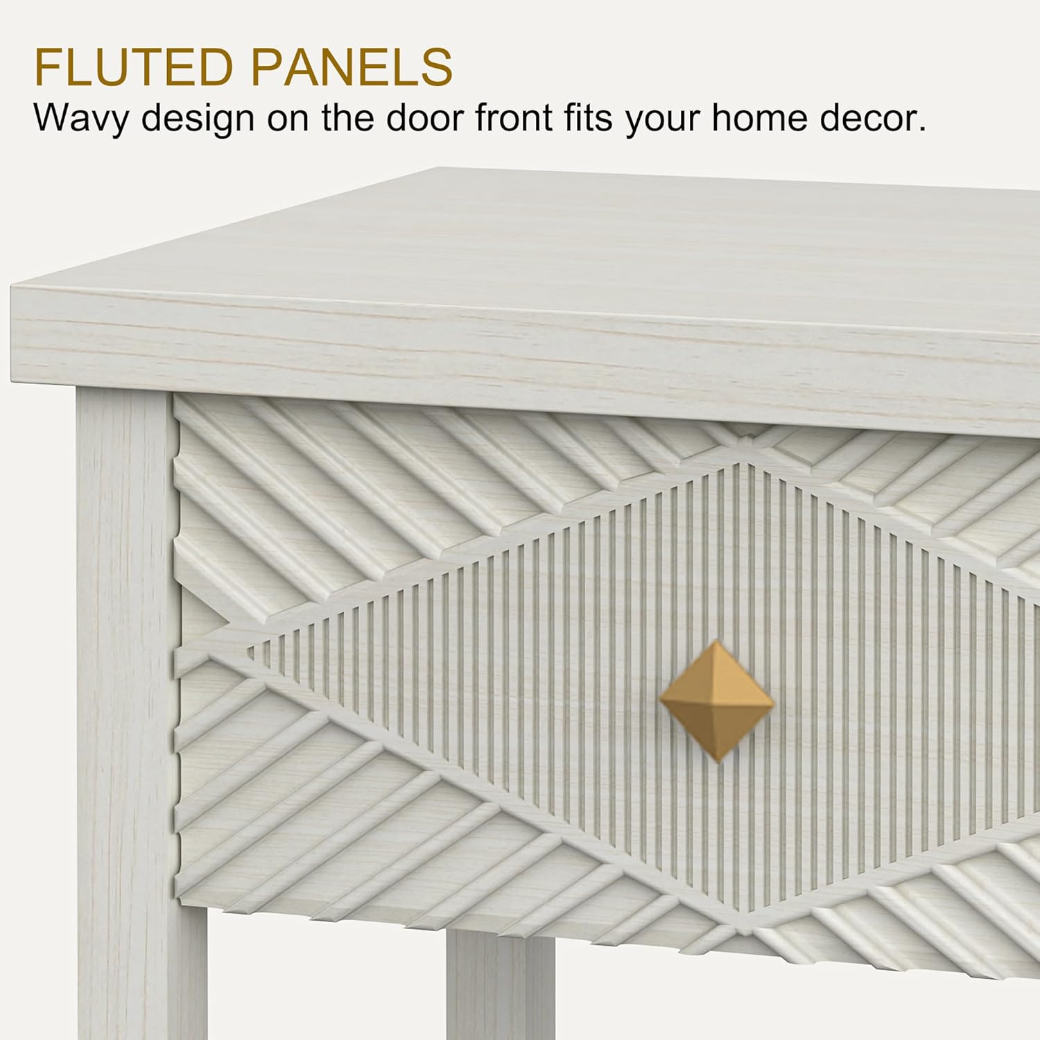 - Diamond Fluted Console Table: Light brown entryway table featuring a woodgrain tabletop with a sophisticated fluted drawer brings depth and texture to space. The refined diamond texture enhances its natural charm, making it an ideal surface for displaying lamps, vases, and picture frames while adding warmth and elegance to home