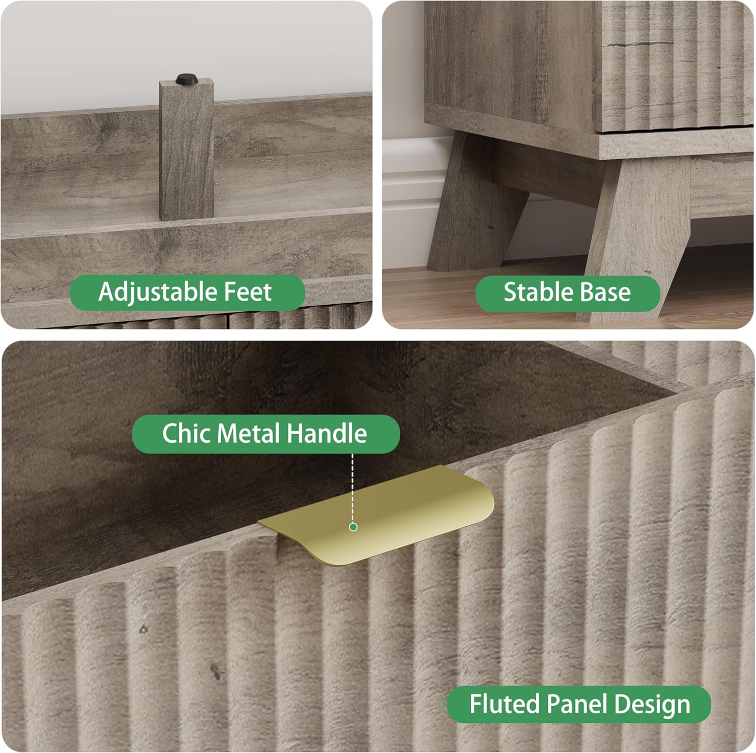 - 【Modern Chic Appearance】The unique wave-like fluted panel enhances the texture and elegance of this bedroom dresser. The thick table top features natural wood grain that complements the black finish. The wide metal handle and splayed base legs add a modern touch, creating a personalized and distinctive appearance