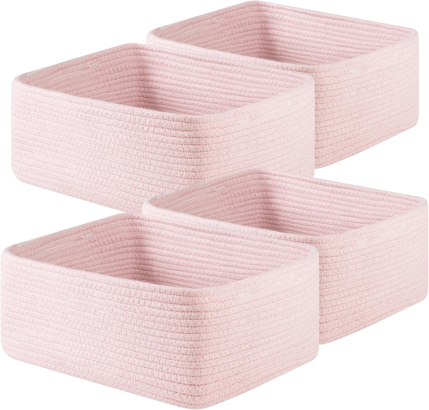 OIAHOMY 4 Pack 14.17*11.02*6.3IN Storage Baskets for Organizing Shelves, Woven Rope Baskets for Organizing Books, Clothes, Decorative Basket for Living Room, Nursery, Bedroom, Gift Basket, Pink