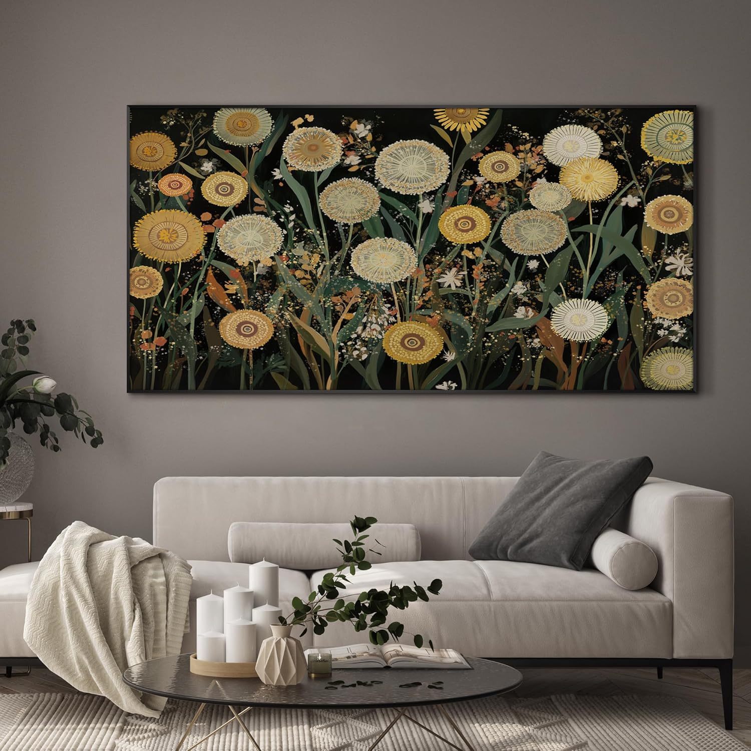 SIGNWIN 36"x72" Extra Large Framed Wall Art Whimsical Dandelion Field in Yellow and Green, Playful Botanical Print for Home Living Room Bedroom Decor (Frame Assembly Required)