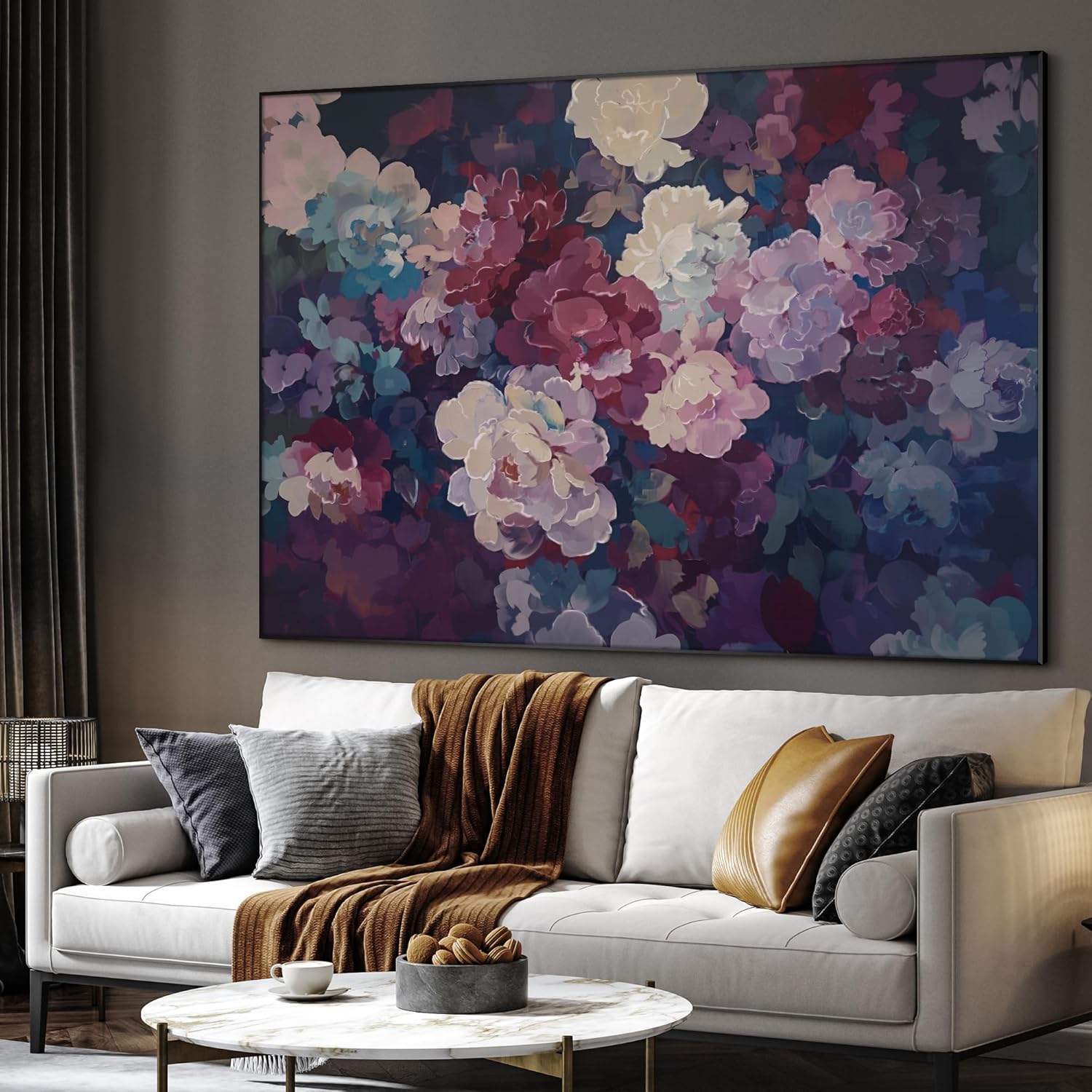 SIGNWIN 46"x60" Extra Large Framed Wall Art Bold Peony Bloom in Colorful Impressionist Style, Lush Floral for Home Living Room Bedroom Decor (Frame Assembly Required)