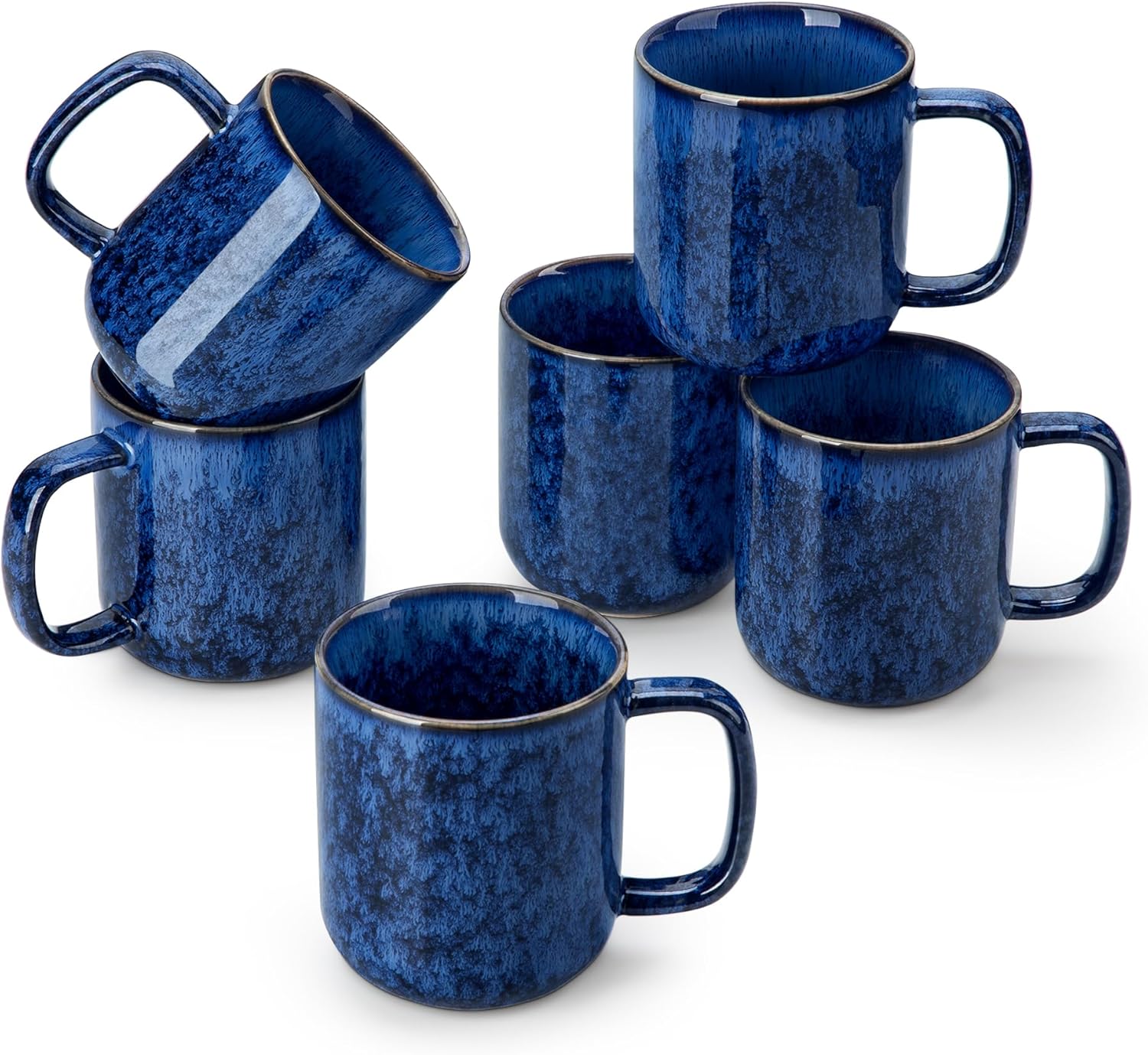 vancasso STARRY Coffee Mugs Set, 12 oz Ceramic Coffee Cups for Latte Hot Tea Cappuccino Cocoa Milk Stoneware Cups Set of 6, Dishwasher & Microwave Safe, Blue