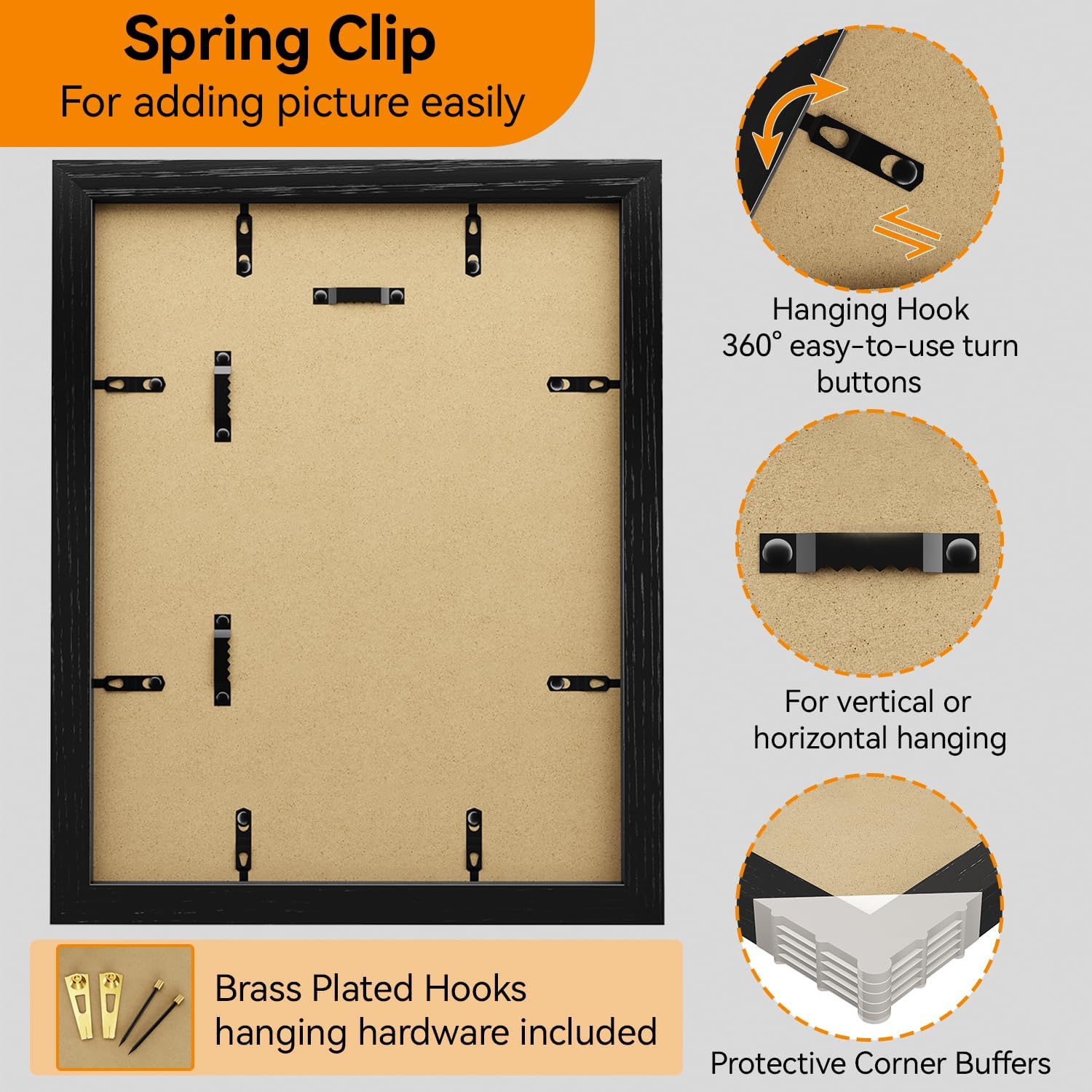 - STURDY AND HD: This 11x14 wood picture frame comes with a sturdy tempered glass front cover that is scratch-resistant and unbreakable, making it safer for you and your family to use. It is easy to clean and scratch-resistant, and its superior clarity faithfully reproduces the true colors of the photo.