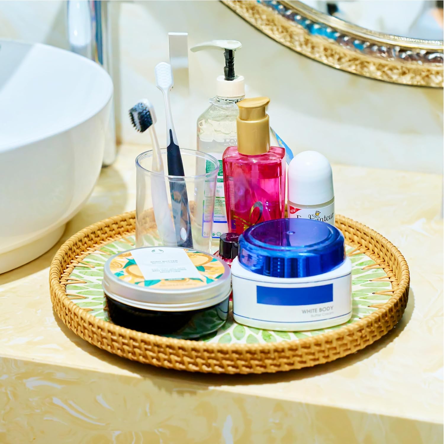 - 🎯 【Durable Rattan with Solid Wooden Base】: Made from high-quality, eco-friendly natural rattan and reinforced with a sturdy wooden base, this wicker tray ensures long-lasting use while offering a lightweight yet stable platform for serving or displaying items.