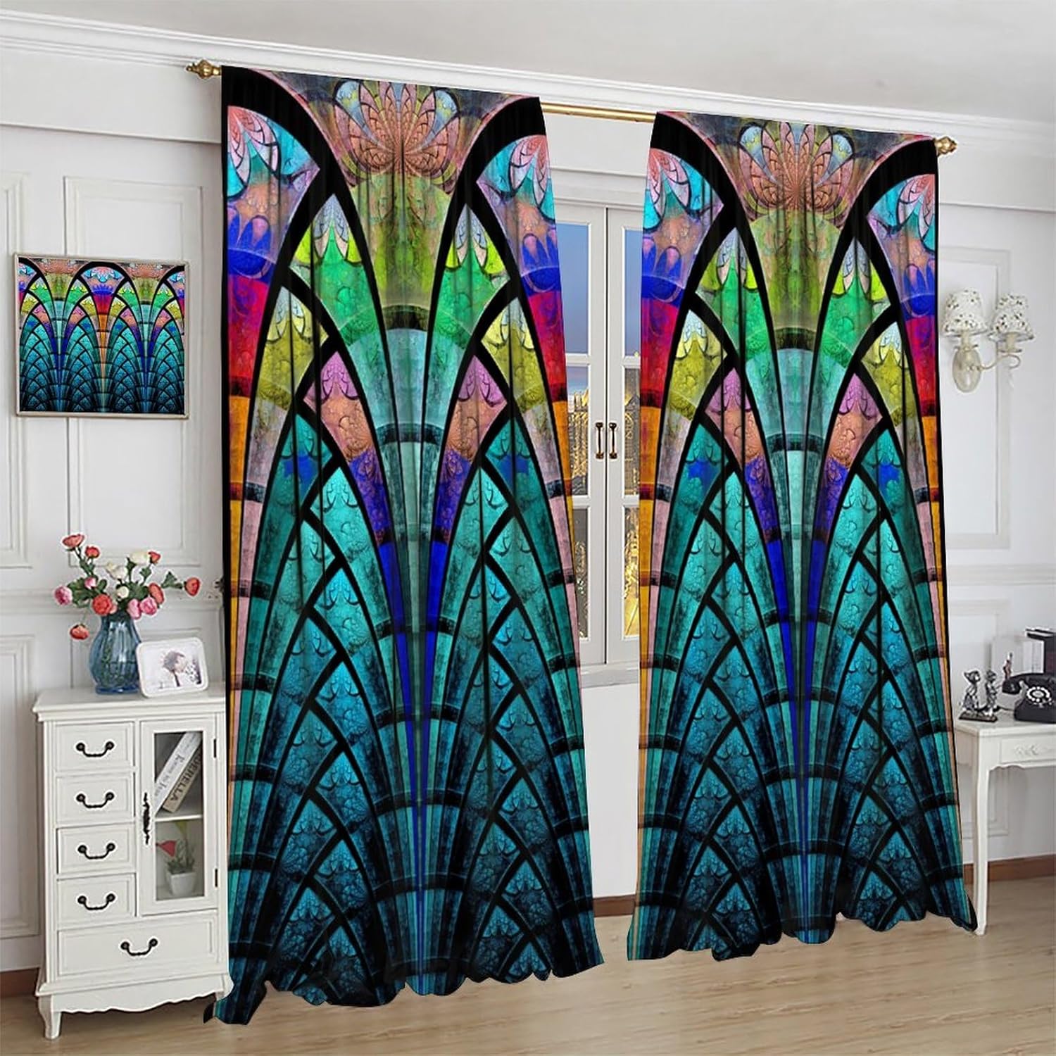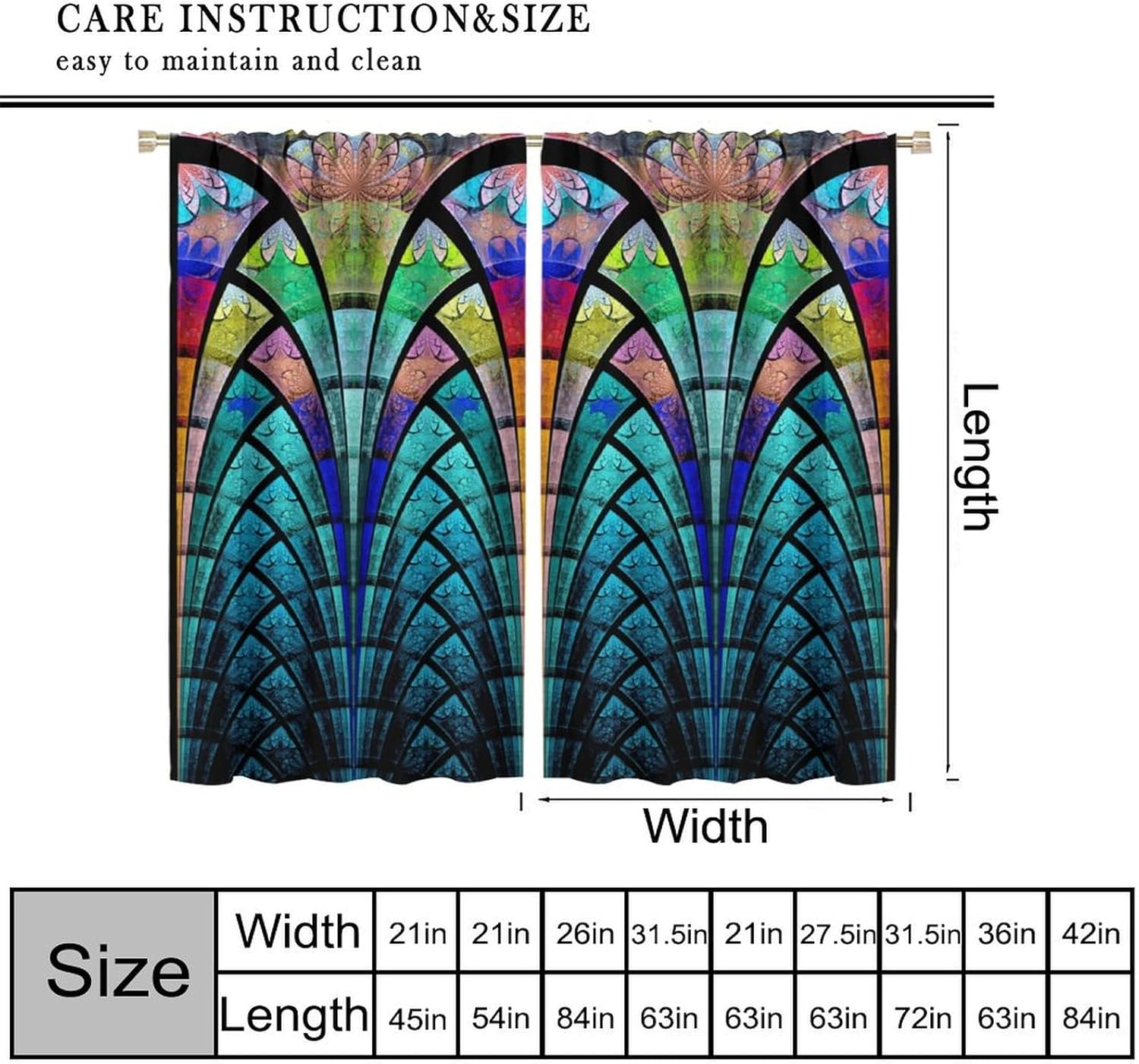 Stained Glass Curtains,Retro Design Style Colorful Abstract Art Home Decor Drapes for Bedroom Living Room Kitchen Window Treatment 2 Panels Set Total Size 84" W X 84" L Inch