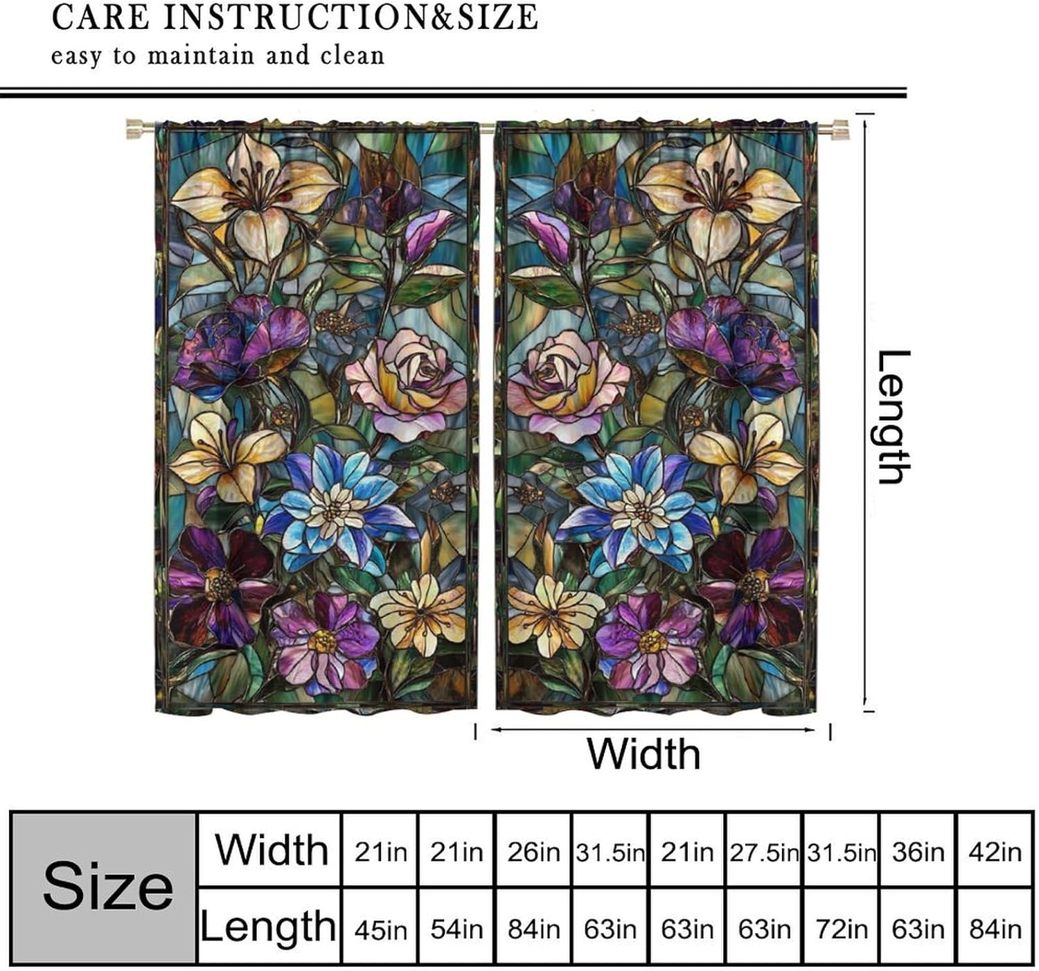 Stained Glass Curtains,Retro Colored Glass Flowers Art Home Decor Drapes for Bedroom Living Room Kitchen Window Treatment 2 Panels Set Total Size 42" W X 45" L Inch