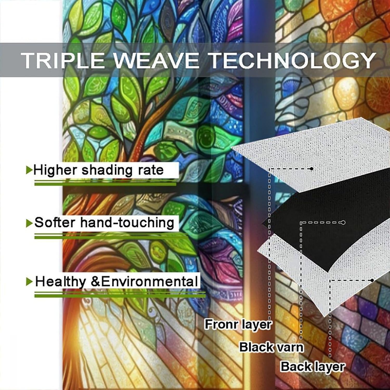 Stained Glass Curtains,Tree of Life Colorful Abstract Art Home Decor Drapes for Bedroom Living Room Kitchen Window Treatment 2 Panels Set Total Size 55" W X 63" L Inch