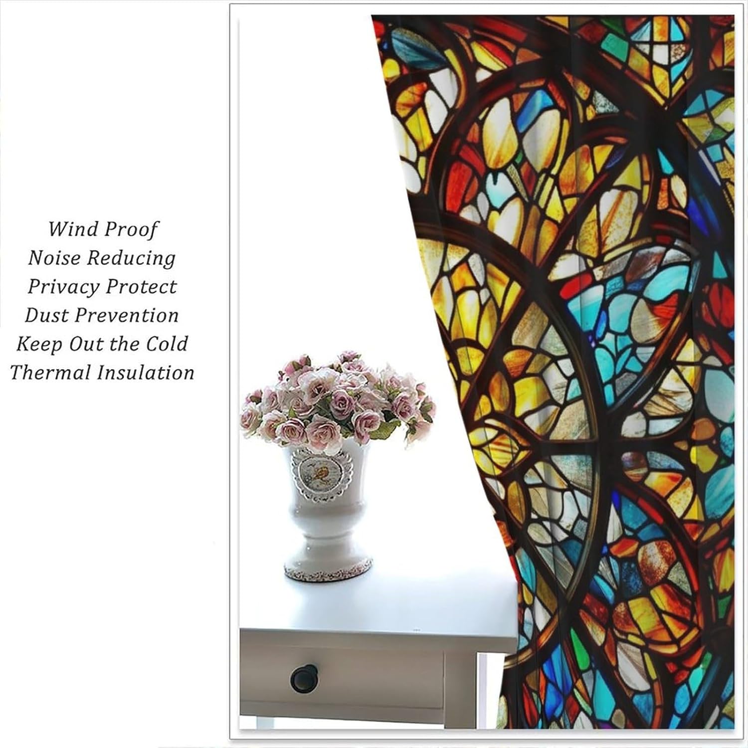 Stained Glass Curtains,Retro Mid Century Abstract Colorful Geometric Prints Home Decor Drapes for Bedroom Living Room Kitchen Window Treatment 2 Panels Set Total Size 63" W X 63" L Inch