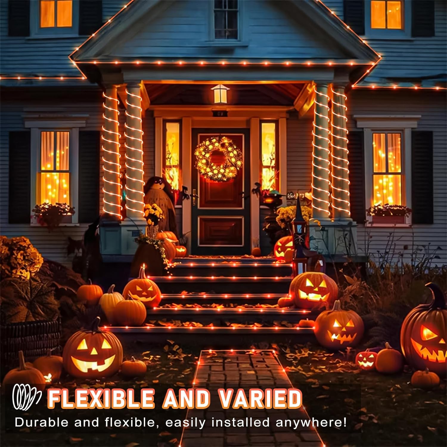 - 【Upgraded Connectable Rope Lights】- Our rope lights for outside feature a 66ft lighting length with a 6.6ft lead wire, total 72.6ft length. LED bulbs are spaced 4 inches apart to provide bright and soft lighting. The Halloween lights can be connected end to end up to 5 sets, long enough to meet your creative lighting decor needs.