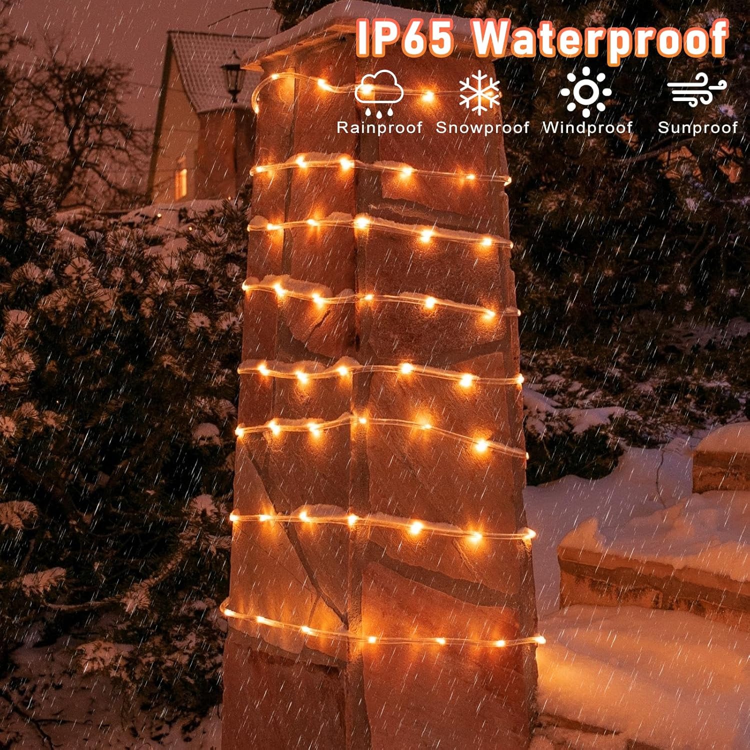 - 【Upgraded Connectable Rope Lights】- Our rope lights for outside feature a 100ft lighting length with a 6.6ft lead wire, total 106.6ft length. LED bulbs are spaced 4 inches apart to provide bright and soft lighting. The Halloween lights can be connected end to end up to 4 sets, long enough to meet your creative lighting decor needs.