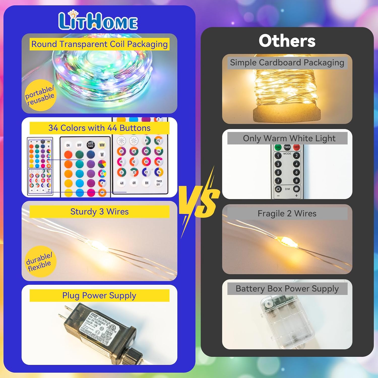 - Color Changing Fairy String Lights – Your Ultimate Mood-Setting Companion : Whether enhancing cozy bedroom moments, illuminating wedding celebrations, powering up parties, adding spooky Halloween charm or sparkling through Christmas festivities—these starry twinkle lights instantly elevate every scene. Immerse yourself in the mesmerizing magic of ever-shifting hues – where every moment glows with possibility!
