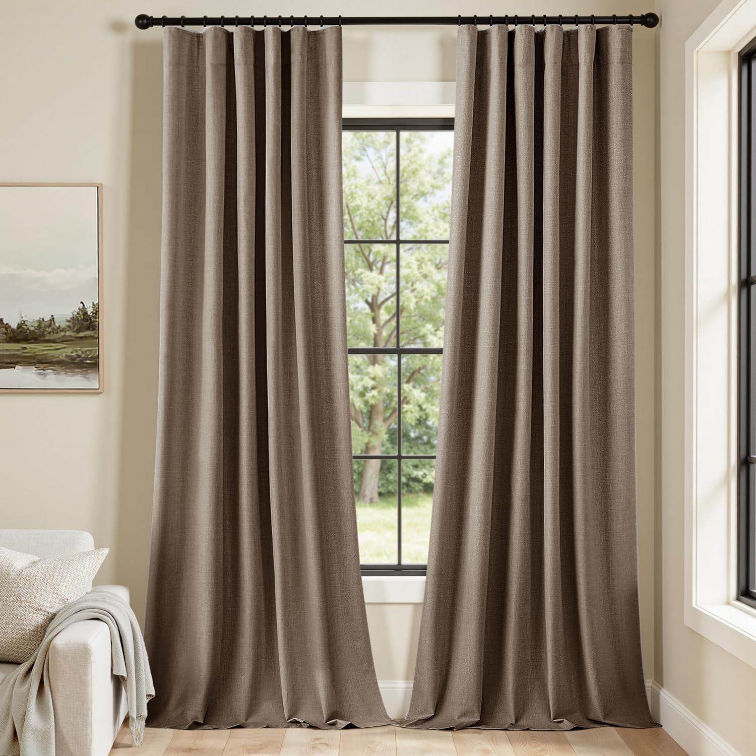 MIULEE 100% Blackout Curtains 120 Inch Long 2 Panels Set for Bedroom, Thick Faux Linen Black Out Curtain Room Darkening Back Tab Pleat Window Textured Drapes with Hooks for Living Room, Dutch Cocoa